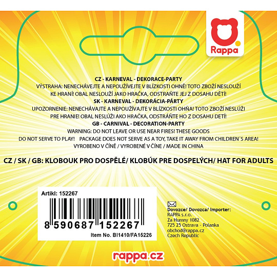 Rappa Klobouk pro dospělé čarodějnice/Halloween
