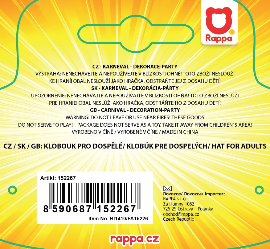 Rappa Klobouk pro dospělé čarodějnice/Halloween