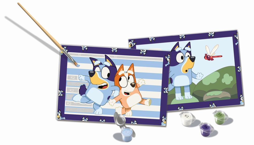 CreArt - to je kreativní zábava doslova pro každého. Staňte se na chvíli profesionálním malířem a namalujte si svůj vlastní obraz.Tento roztomilý motiv z oblíbeného seriálu Bluey rozzáří každou zeď. Postupně vybarvujte jednotlivé plochy podle návodu (každé číslo na plátně odpovídá jedné konkrétní barvě) a dopřejte si radost z tvůrčí práce, u které se zabavíte na dlouhé hodiny. Malování je skvělá činnost, která nejen baví, ale také procvičuje zručnost, zlepšuje koncentraci a zaručuje spokojenost a pocit hrdosti všem umělcům. Set obsahuje vše, co potřebujete k malování: vysoce kvalitní, pevný kartonový podklad s obrazovou předlohou s očíslovanými plochami, sadu akrylových barev, štětec, kartonový stojánek pro kelímky s barvami a rámeček. Vykreslené plochy vytváří profesionálně vypadající umělecké dílo. Jakmile obraz dokončíte, nechte ho zaschnout a zarámujte ho do rámečku, který je součástí balení. Malování nikdy nebylo tak jednoduché.