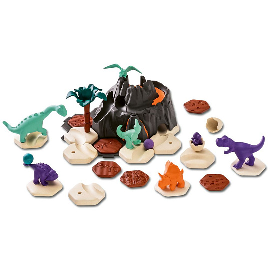 GraviTrax Junior je interaktivní systém kuličkové dráhy pro děti od 3 let. Ti nejmenší si staví své vlastní světy z kuličkových drah, které lze podle libosti zdobit a vytvářet tak jednotlivé tematické světy. Děti si tak při kreativním stavění užijí mnoho zábavy. Ve spojení se startovací sadou se děti od 3 let mohou okamžitě ponořit do světa dinosaurů. Různorodé dinosauří figurky, působivá sopka a další tematické prvky poskytují nekonečné možnosti stavění a hraní. Všechny součásti jsou vyrobeny z dřevěného bioplastu.