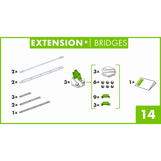 Tato sada doplní vaší stavebnici GraviTrax® o dva mosty a řadu drah. Mosty se před kuličkou samy rozbalí a umožní její přesun na vzdálenou část trati. Spojte jednotlivé úseky tratě ve velkolepé dráhy a objevte tak celou řadu nových konstrukčních možností.