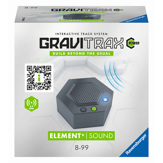 Se Zvukovým prvkem řady GraviTrax POWER lze do jakékoli dráhy GraviTrax integrovat skvělé zvukové efekty. Mezi všemi prvky GraviTrax POWER existují neviditelná spojení. Po přijetí signálu se spustí akční zvuk. Je možné přepínat mezi různými zvukovými světy. Kromě toho lze stisknutím tlačítka zvolit atmosférickou hudbu na pozadí. Budete po