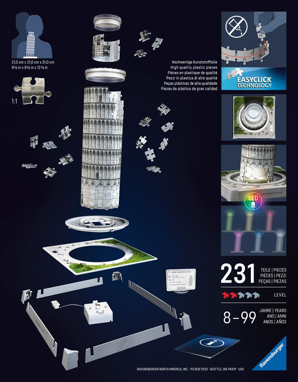 Ravensburger Iconics: Šikmá věž v Pise (Noční edice)