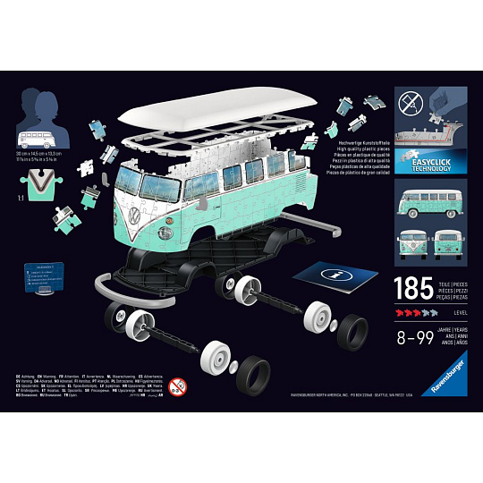Zažijte jedinečnou kombinaci skládání a stavění a vytvořte si působivý model VW Autobusu. Kvalitní, plastové puzzle s technologií Easyclick. Bez nutnosti lepení!