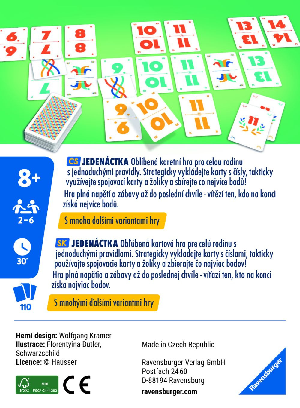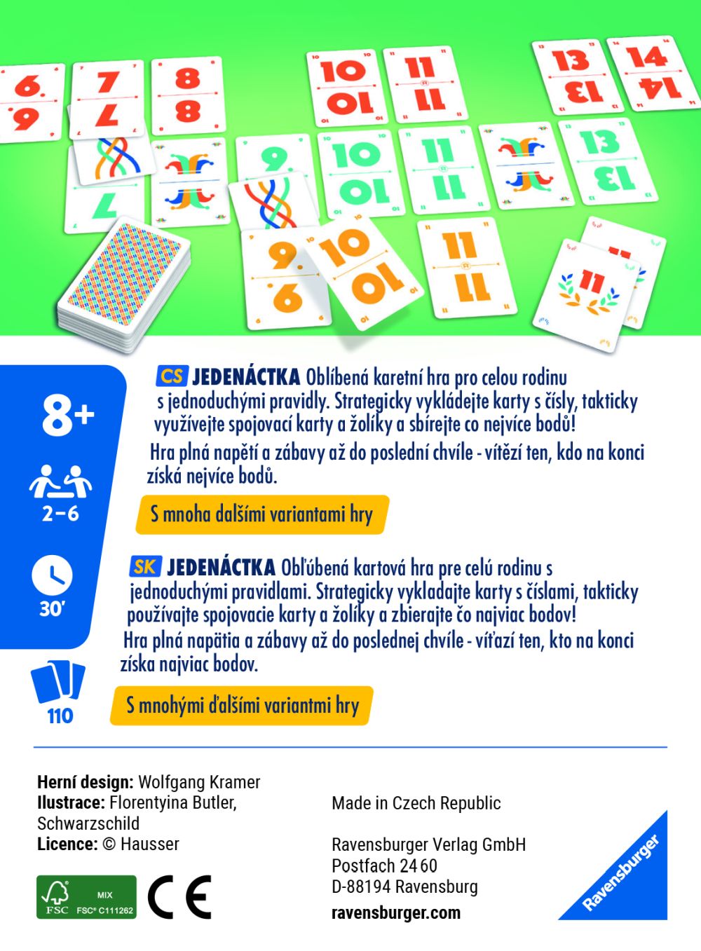 Poznejte 11! – klasickou karetní hru, která baví generace hráčů už od roku 1925! Tato hra přináší rychlou zábavu, jednoduchá pravidla a napětí až do poslední karty. Kombinujte karty strategicky, překazte plány soupeřům a chytrým tahem ukončete hru v ten pravý moment! Ideální volba pro rodinné večery i přátelské souboje, ve kterých se u stolu nikdo nebude nudit. 11! – léty ověřená klasika, která přináší radost všem věkovým kategoriím.