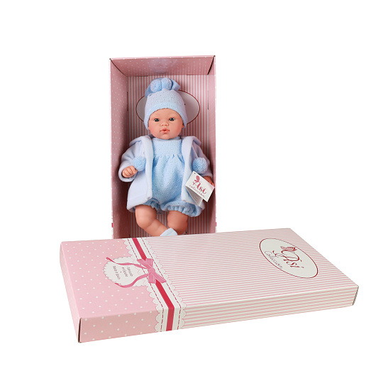 Krásné realistické miminko chlapeček Koke, chlapečkem je jenom podle oblečku, panenky s látkovým tělíčkem nemají vyznačené pohlaví. Koke je vyrobeno firmou Asivil ve Španělsku. Miminko je dlouhé 36 cm a má měkké - látkové tělíčko, hlava a končetiny jsou vyrobeny z vinylu. Koke nemá vlásky, má nemrkací akrylové oči hnědé barvy. Koke je oblečený do modrého pleteného overálku bez rukávů a nohavic, přes který má teplý modrý kabátek zavazovaný u krku na bambulky. Na hlavě má pletenou čepičku a na nohou světle modré ponožky. Asivil je rodinný podnik, který se více jak 50 let pyšní výrobou vysoce kvalitních panenek, známých pod značkou ASI. Panenky jsou ještě krásnější tím, že se firma zavázala ke 100% španělské řemeslné výrobě, splňující všechny evropské výrobní normy. Jejich produkty kombinují tradici i moderní trendy. Panenka je balena v dárkové krabici a splňuje bezpečnostní a zdravotní normy (CE). Doporučeno pro děti od 3 let.