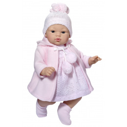 Krásné realistické miminko holčička Rosa je vyrobeno firmou Asivil ve Španělsku. Miminko je dlouhé 36 cm a má měkké - látkové tělíčko, hlava a končetiny jsou vyrobeny z vinylu. Rosa nemá vlásky, má nemrkací akrylové oči hnědé barvy. Holčička je oblečená do růžových pletených šatiček, přes které má teplý růžový kabátek zavazovaný u krku na bambulky. Na hlavě má pletenou čepičku a na nohou růžové ponožky. Asivil je rodinný podnik, který se více jak 50 let pyšní výrobou vysoce kvalitních panenek, známých pod značkou ASI. Panenky jsou ještě krásnější tím, že se firma zavázala ke 100% španělské řemeslné výrobě, splňující všechny evropské výrobní normy. Jejich produkty kombinují tradici i moderní trendy. Panenka je balena v dárkové krabici a splňuje bezpečnostní a zdravotní normy (CE). Doporučeno pro děti od 3 let.