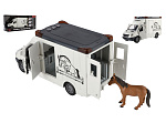 Auto přepravník zvířat plast 28cm s koněm na setrvačník se světlem se zvukem šedé v krabici 39x18cm