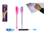 Teddies Tajné pero s neviditelným inkoustem a ÚV světlem + propiska plast 15cm na baterie 4 barvy