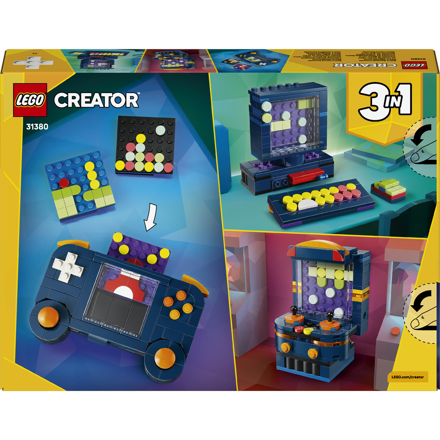 - 3 v 1: Získejte 3 různé modely v jedné stavebnici – přenosnou herní konzoli, stolní mini počítač a arkádový herní automat.