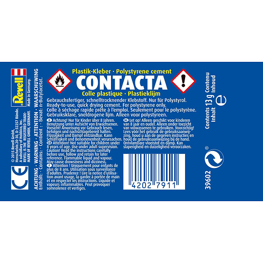 Revell Contacta je gelové lepidlo v tubě. Jeho výhodou je to, že velké díly můžete přesně umístit ještě před tím, než lepidlo zaschne.