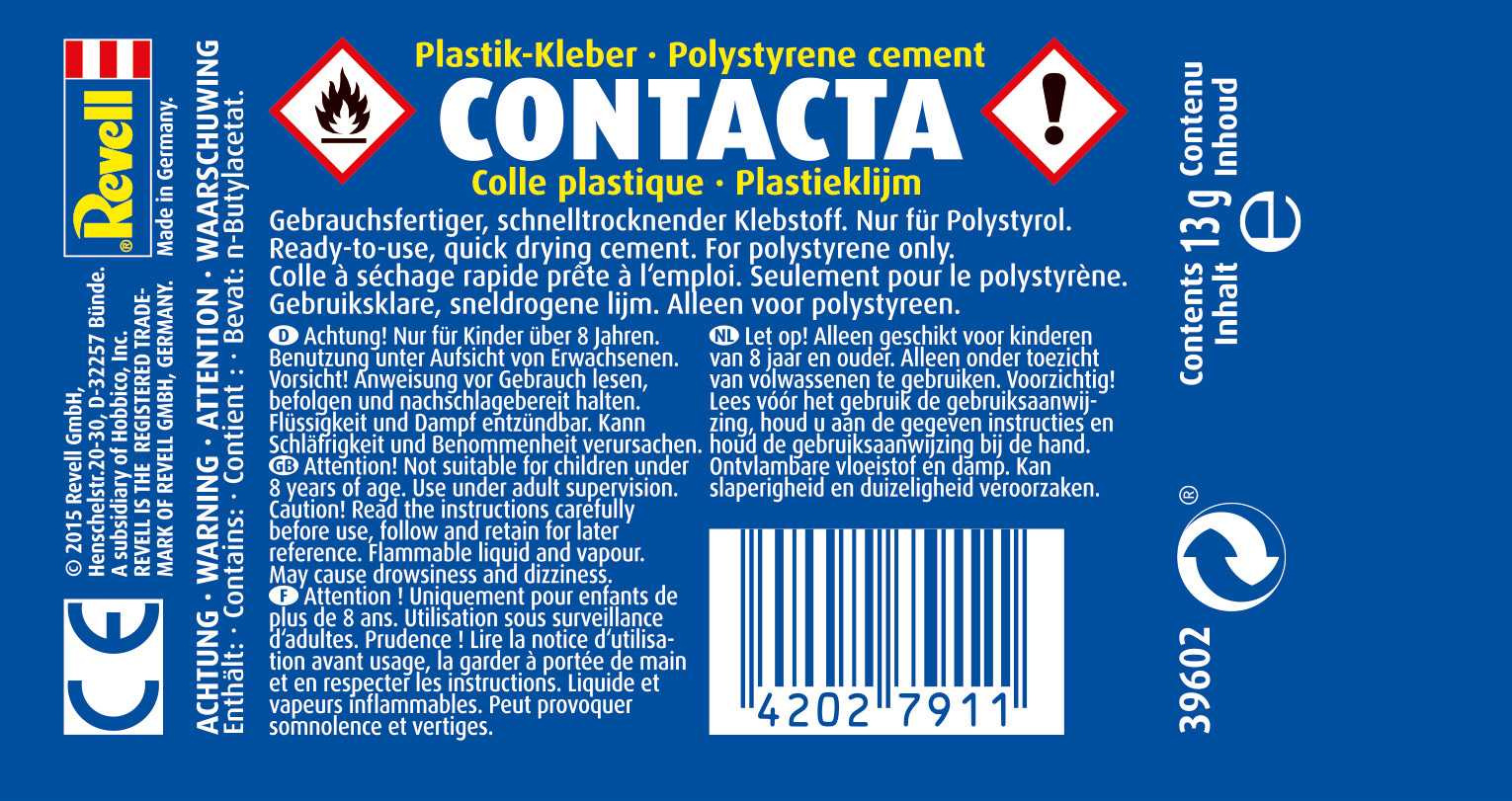 Revell Contacta je gelové lepidlo v tubě. Jeho výhodou je to, že velké díly můžete přesně umístit ještě před tím, než lepidlo zaschne.