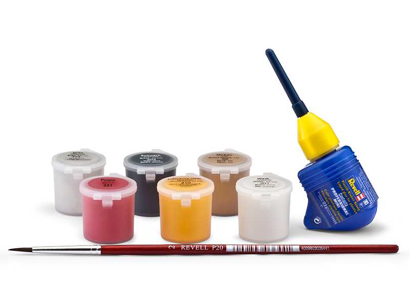 Balení dále obsahuje lepidlo, štětec a barvičky 88, 301, 302, 310, 331, 374 (14 ml).
