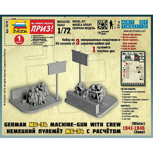 Zvezda Wargames (WWII) figurky 6210 - Ger. Machine-gun with Crew (Winter Uniform) (1:72)