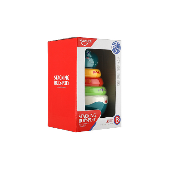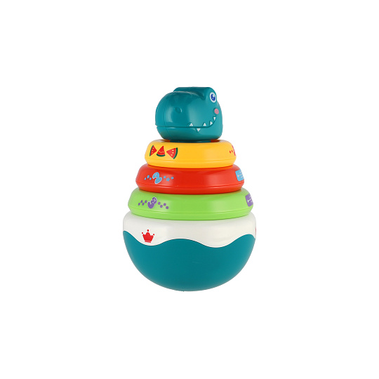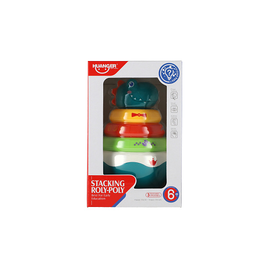 Roly Poly dinosaurus plast 16cm skládanka pyramida s kroužky se zvukem v krabičce 13x20cm 6m+