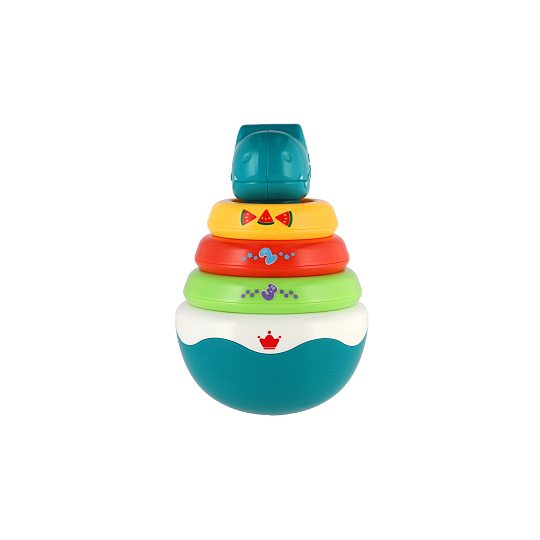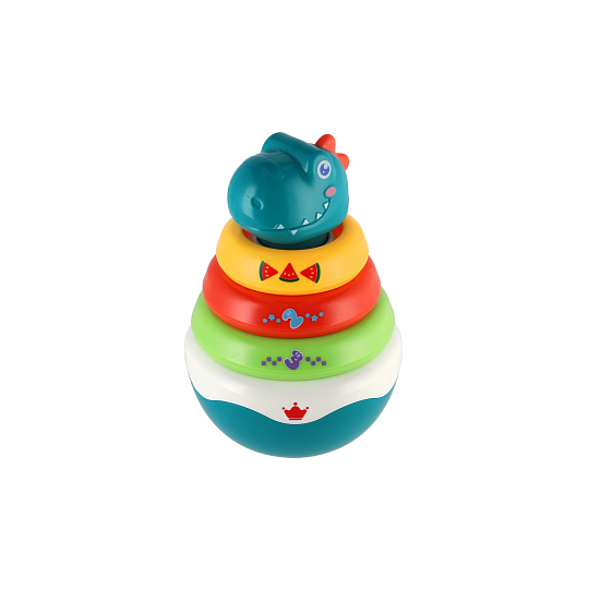 Hračka se zakulaceným podstavcem a rolničkou uvnitř, která vydává příjemný zvuk při pohybu. Podporuje rozvoj zraku, sluchu a koordinaci. Dinosaurus je také skládankou pyramida. Rozměr zvířátka: 16 cm Rozměry balení 13 x 20 x 11 cm. Vhodné pro děti od 6 měsíců.