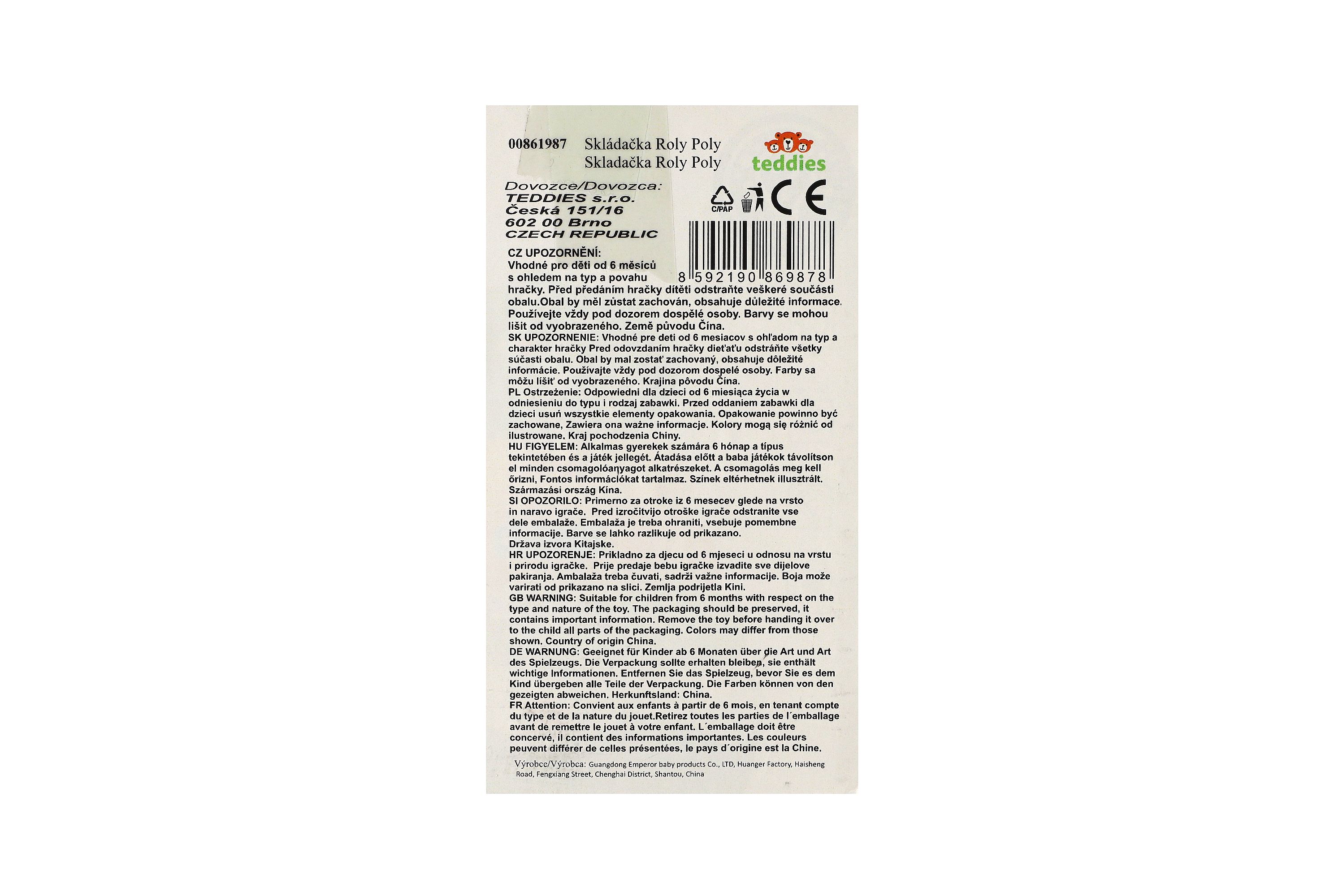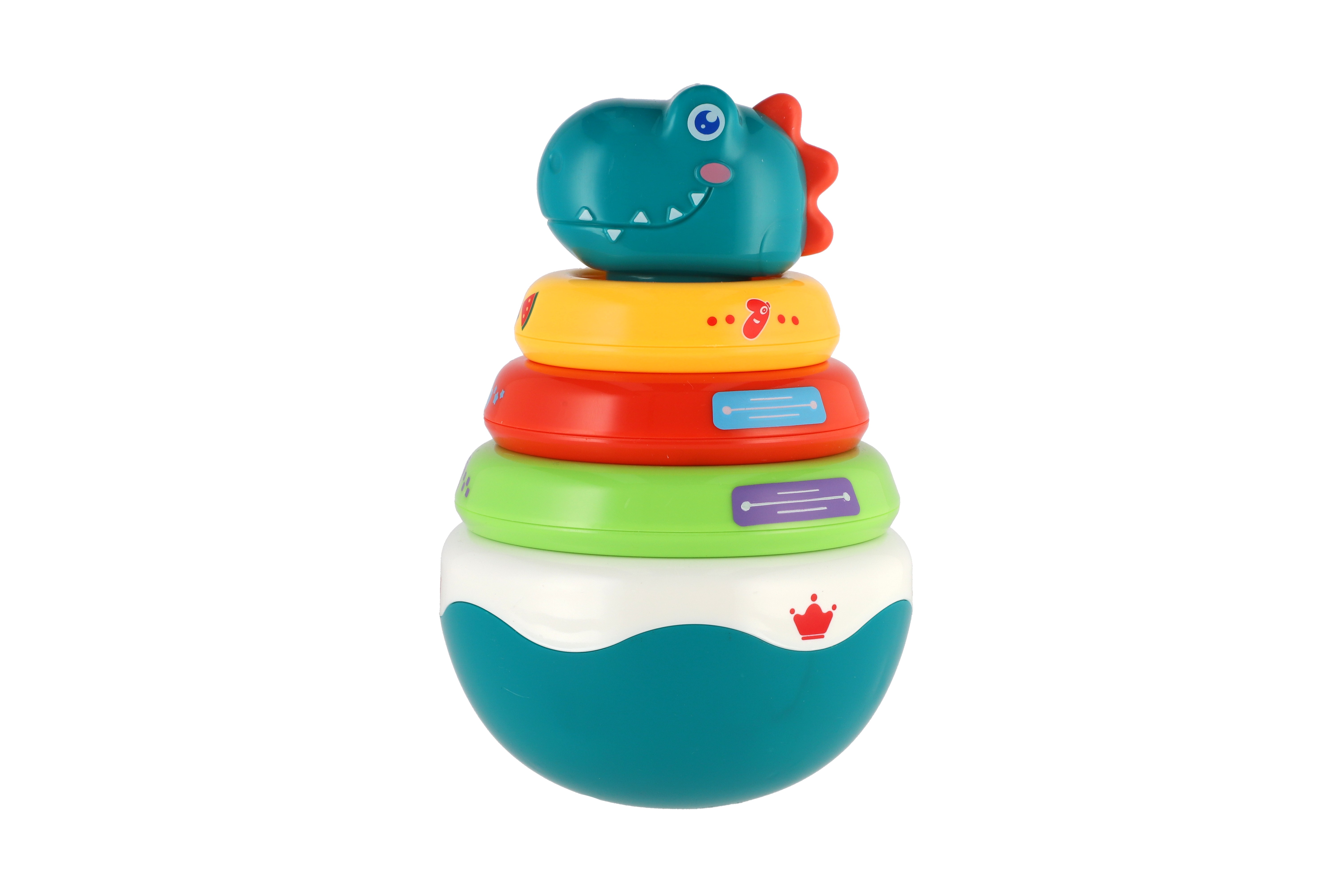Roly Poly dinosaurus plast 16cm skládanka pyramida s kroužky se zvukem v krabičce 13x20cm 6m+