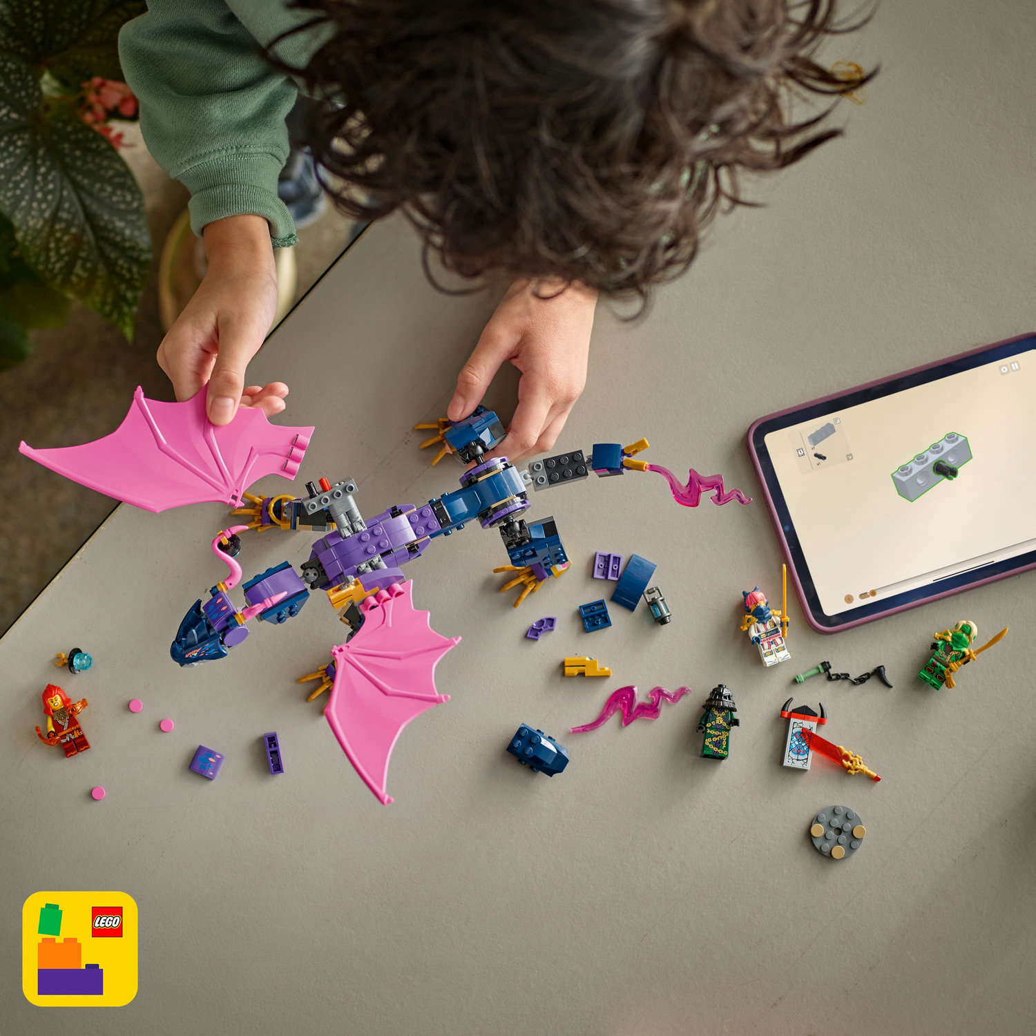 Se stavebnicí LEGO® NINJAGO® (71842) Rontu – Pán draků si fanoušci nindžů od 7 let připomenou akční scény z 3. řady televizního seriálu NINJAGO Dračí povstání. Tato stavebnice pro děti obsahuje model draka s pohyblivým ocasem, nohama, křídly, hlavou a čelistí, 2 pozicemi na zádech pro umístění minifigurky a vystřelovačem pod každým křídlem. Tato stavebnice LEGO obsahuje 4 minifigurky NINJAGO: Nindža válečníky Lloyda, Soru a Wyldfyre s nindžovskými zbraněmi a mistra neštěstí Zarkta, se kterými si děti přehrají velkolepé bitvy dobra proti zlu. Součástí je také miniaturní svatyně z kostek s tajným vzkazem, který Lloyd odhalí pomocí své průsvitné odhalující čepele. Stavebnice a sestavitelné akční hračky z řady LEGO NINJAGO (prodávají se samostatně) obsahují robotické obleky, vozidla a chrámy a fanoušci si s nimi užijí hodiny akčního hraní s nindži. Aplikace LEGO Builder vám a vašemu dítěti ukáže snadnou a intuitivní cestu stavitelským dobrodružstvím.