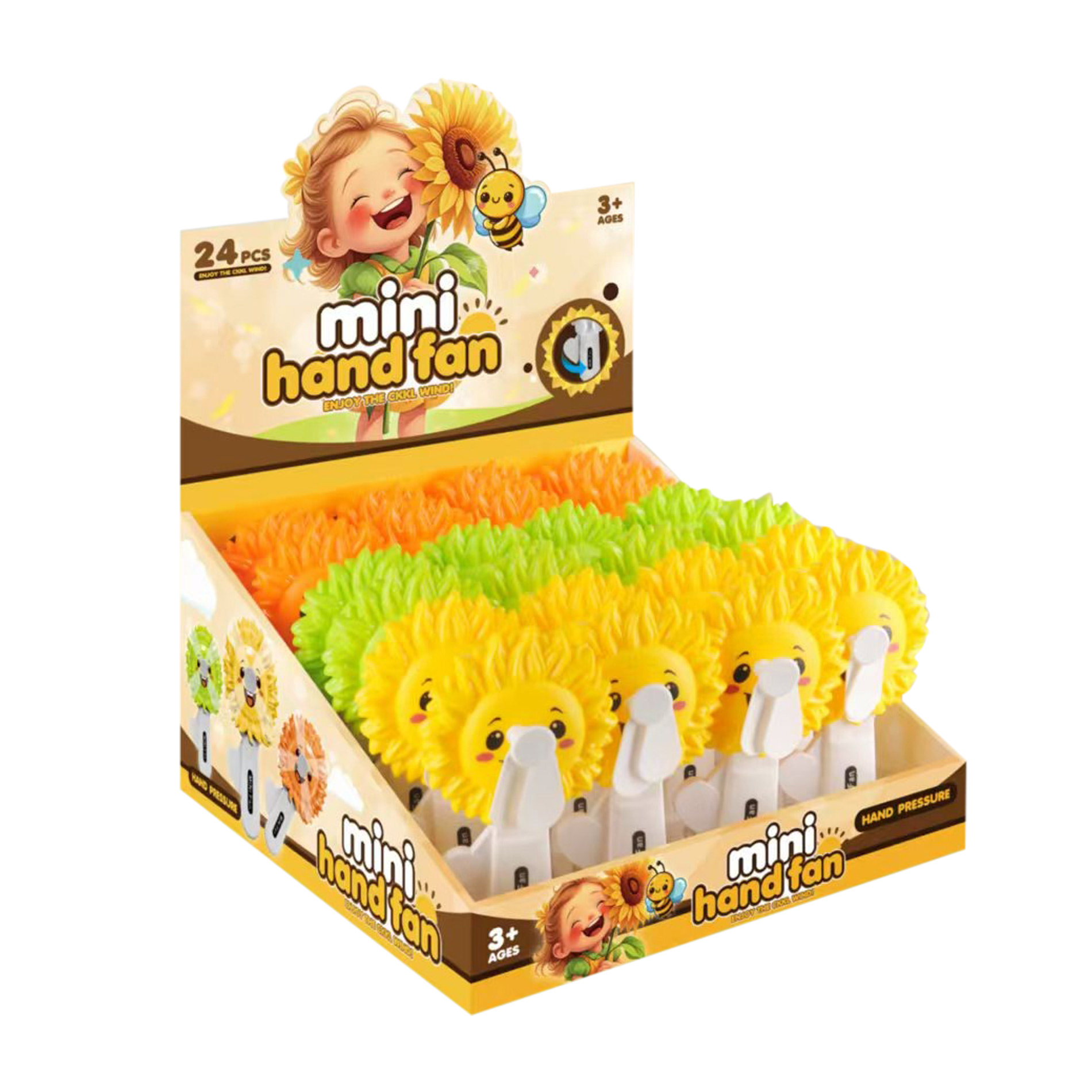Zábavný ruční větráček/ventilátor z plastu nejen pro děti. Vrtulka se roztočí mačkáním páčky. Jednoduchý a účinný způsob jak zchladit sebe nebo své kamarády v horkých letních dnech. Mechanický pohon - na setrvačník.