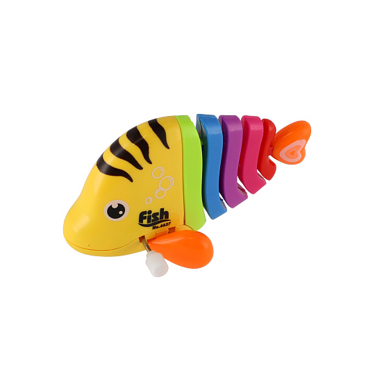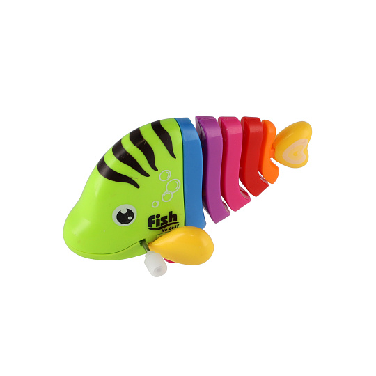 Pestrobarevná rybka na natažení vyrobená z plastu. Veliskot 11 cm. Vhodně pro děti od 3 let.