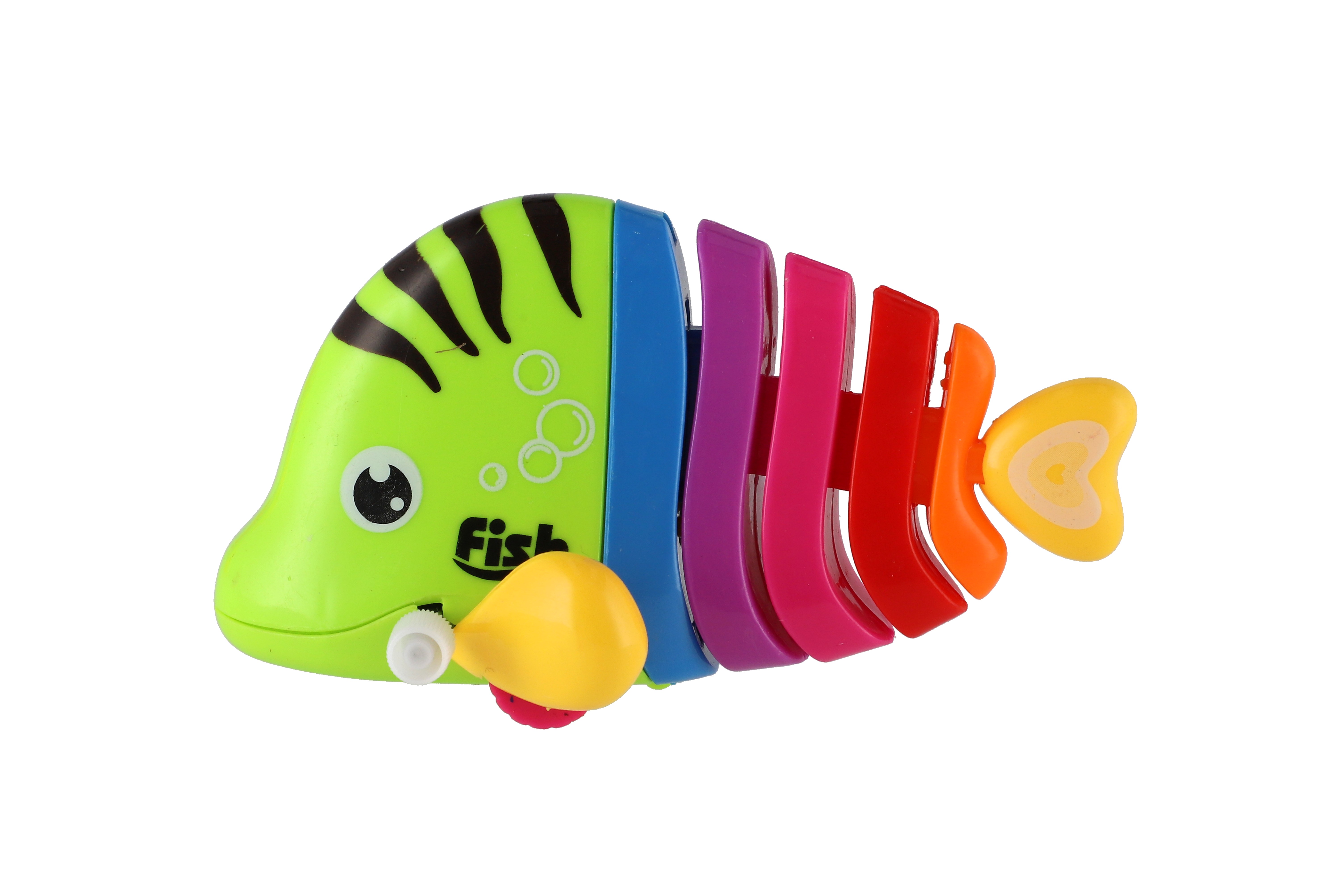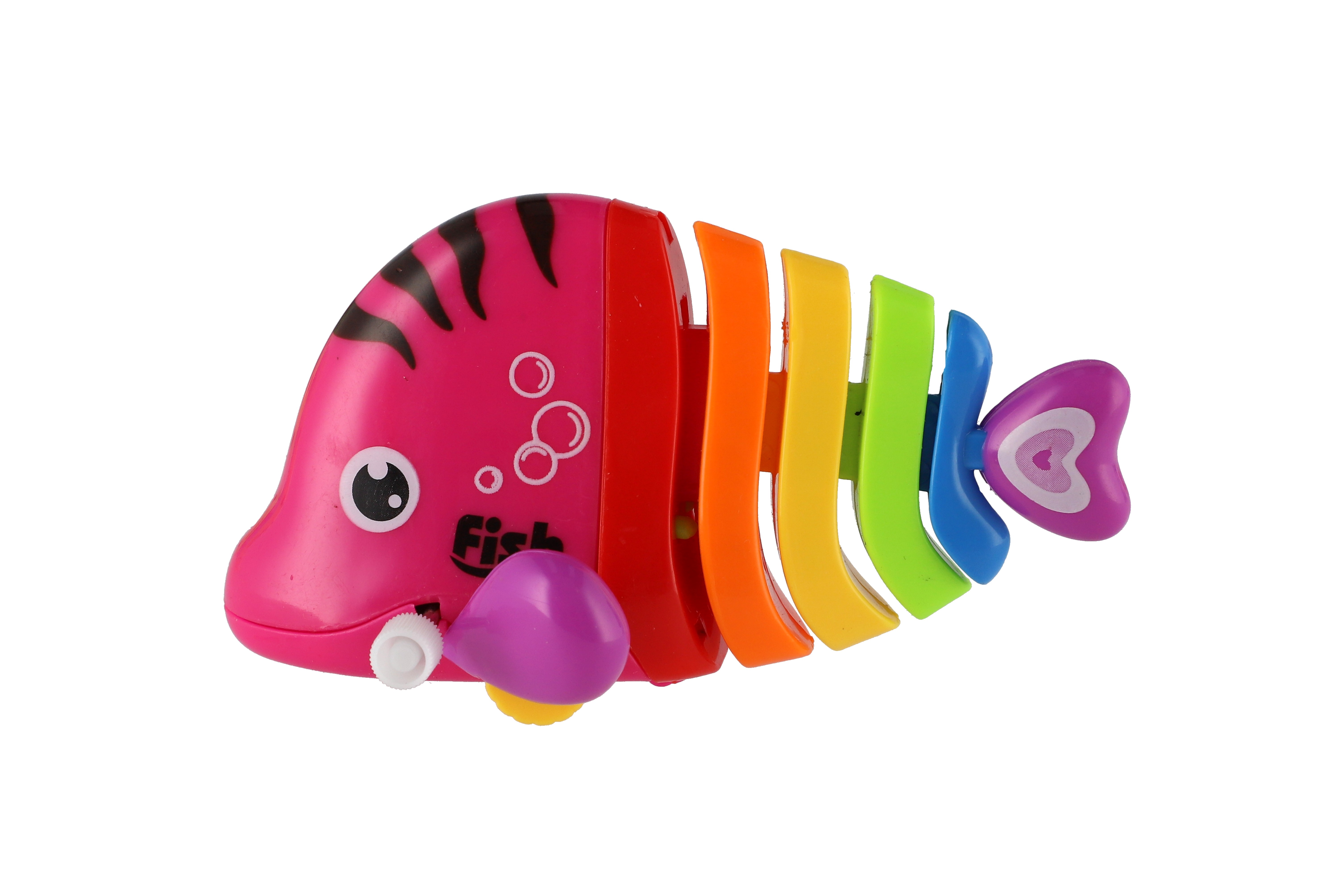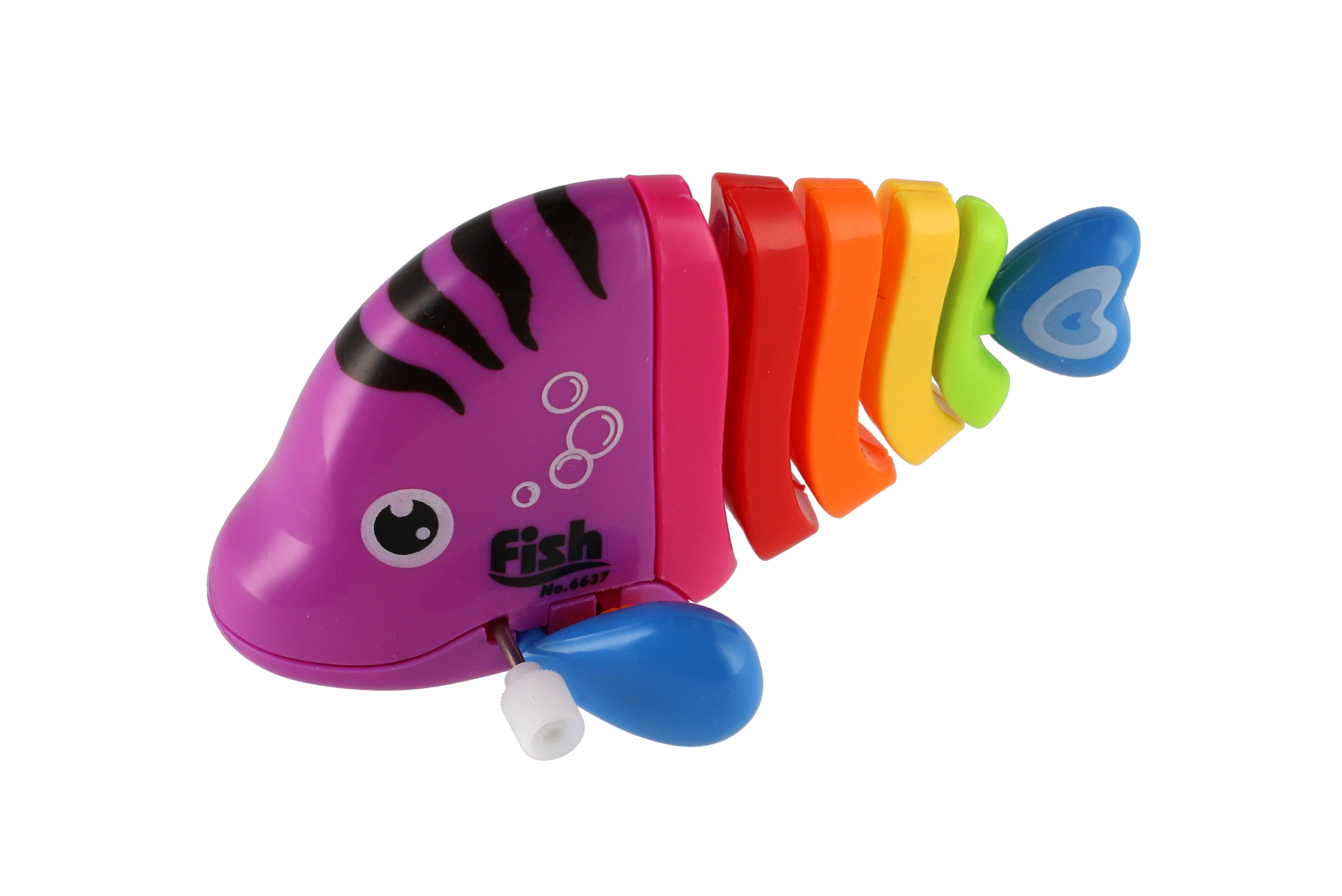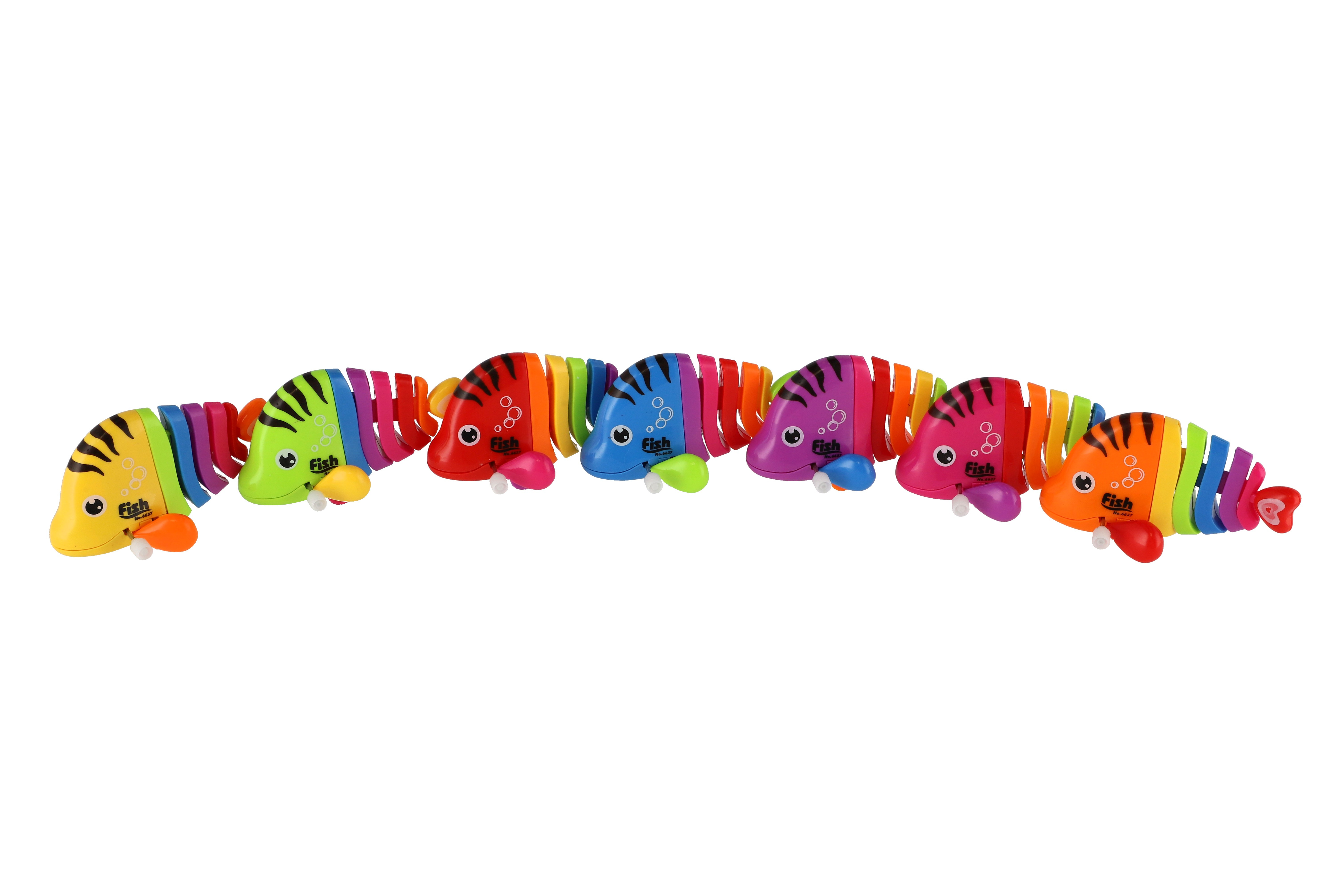 Pestrobarevná rybka na natažení vyrobená z plastu. Veliskot 11 cm. Vhodně pro děti od 3 let.