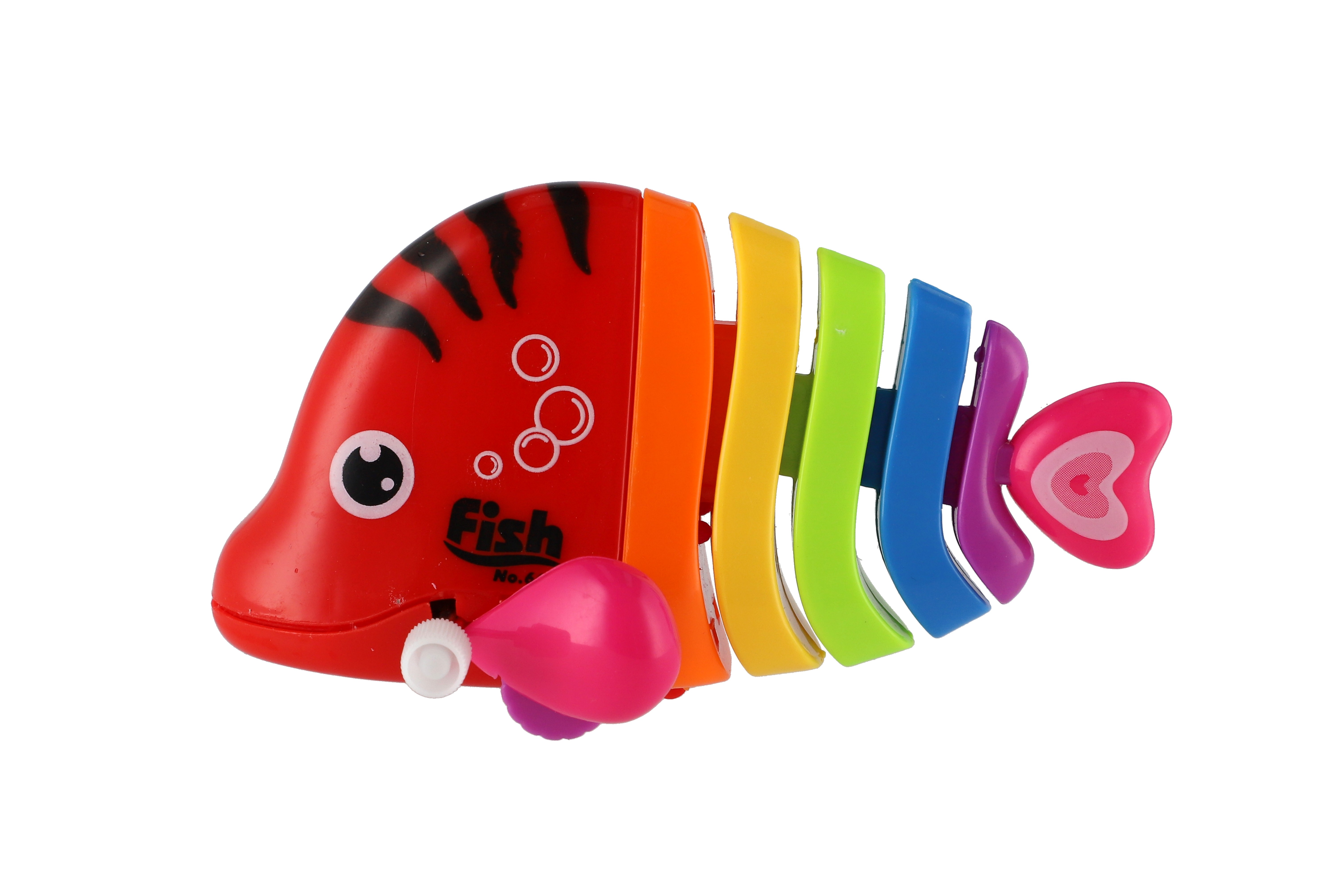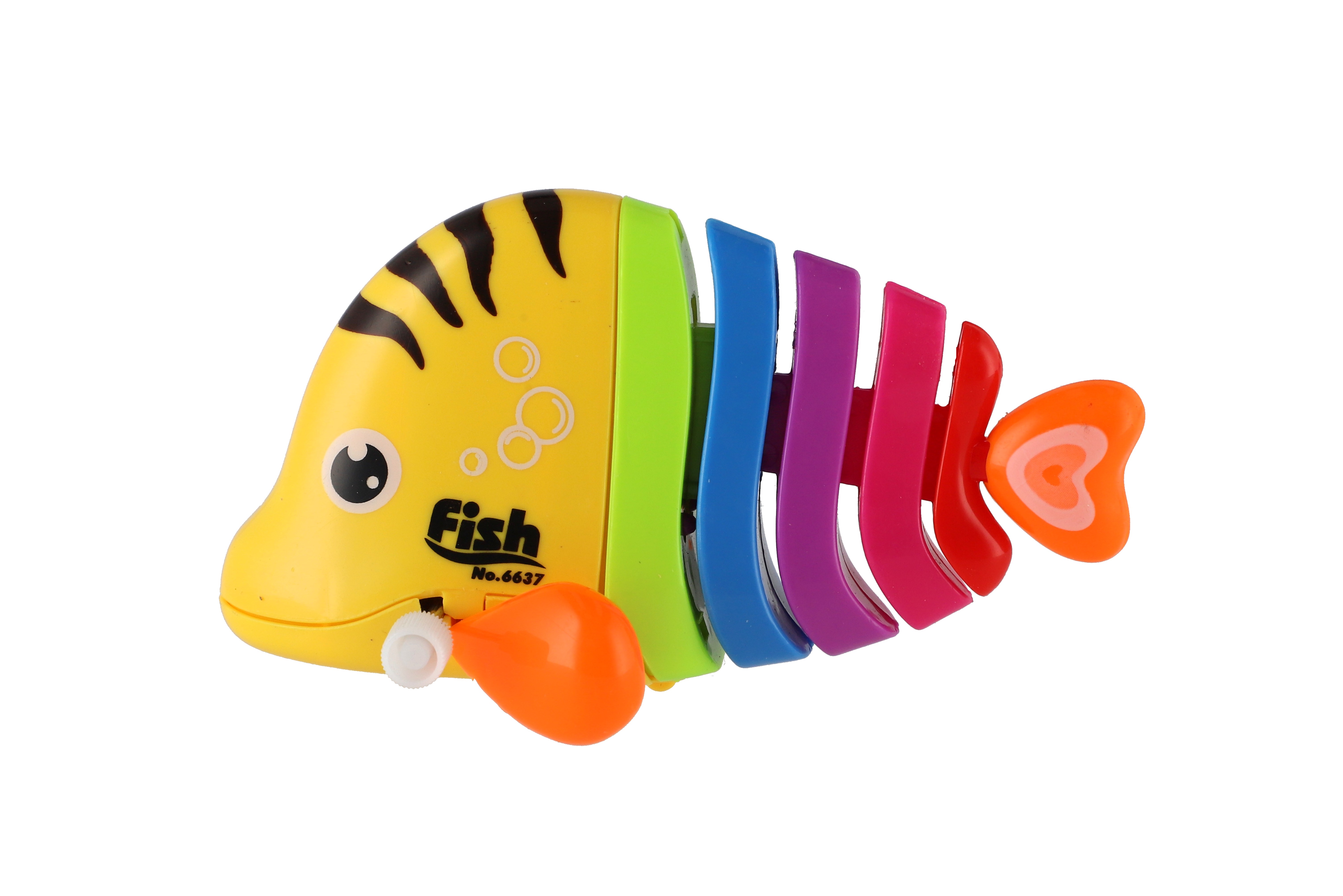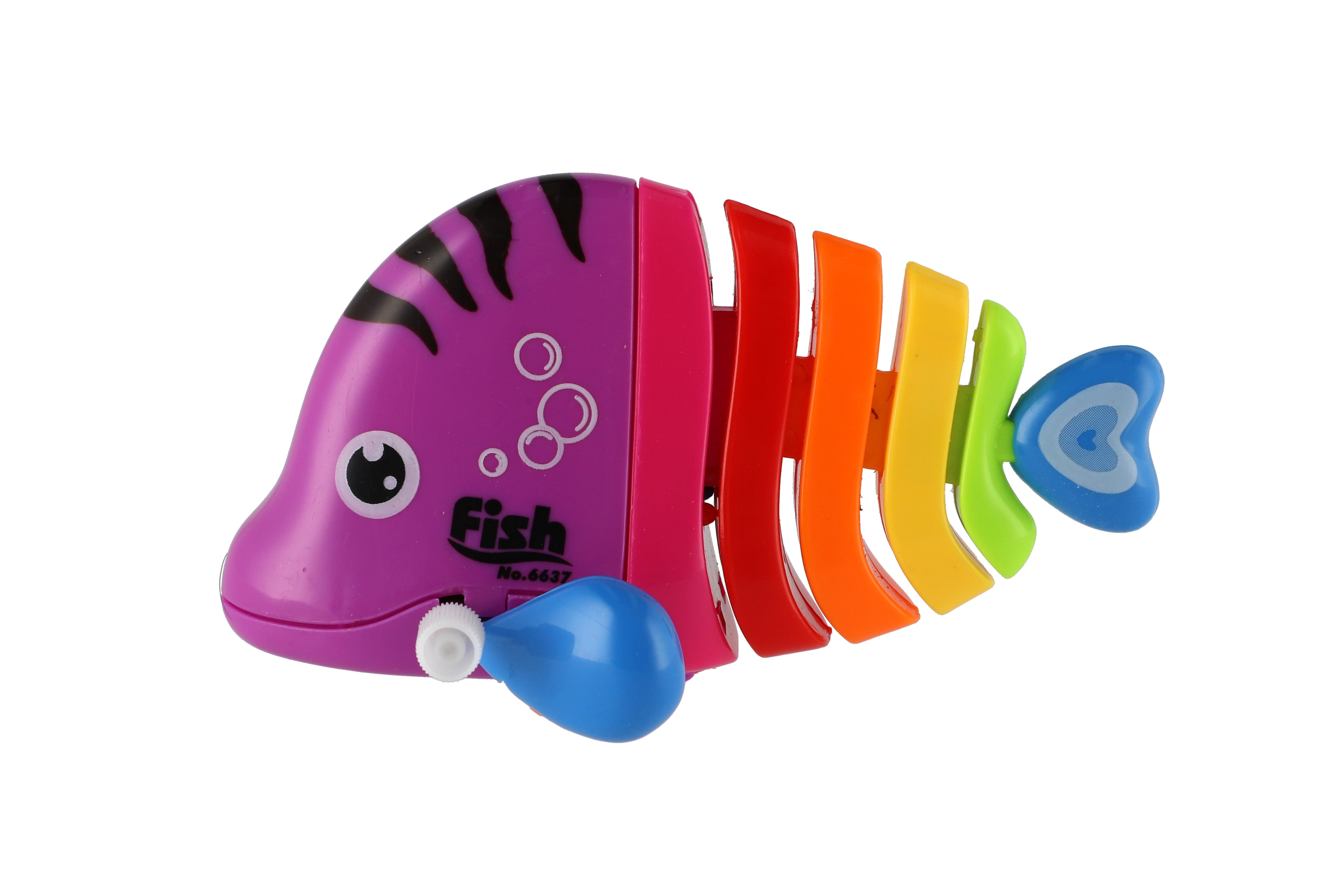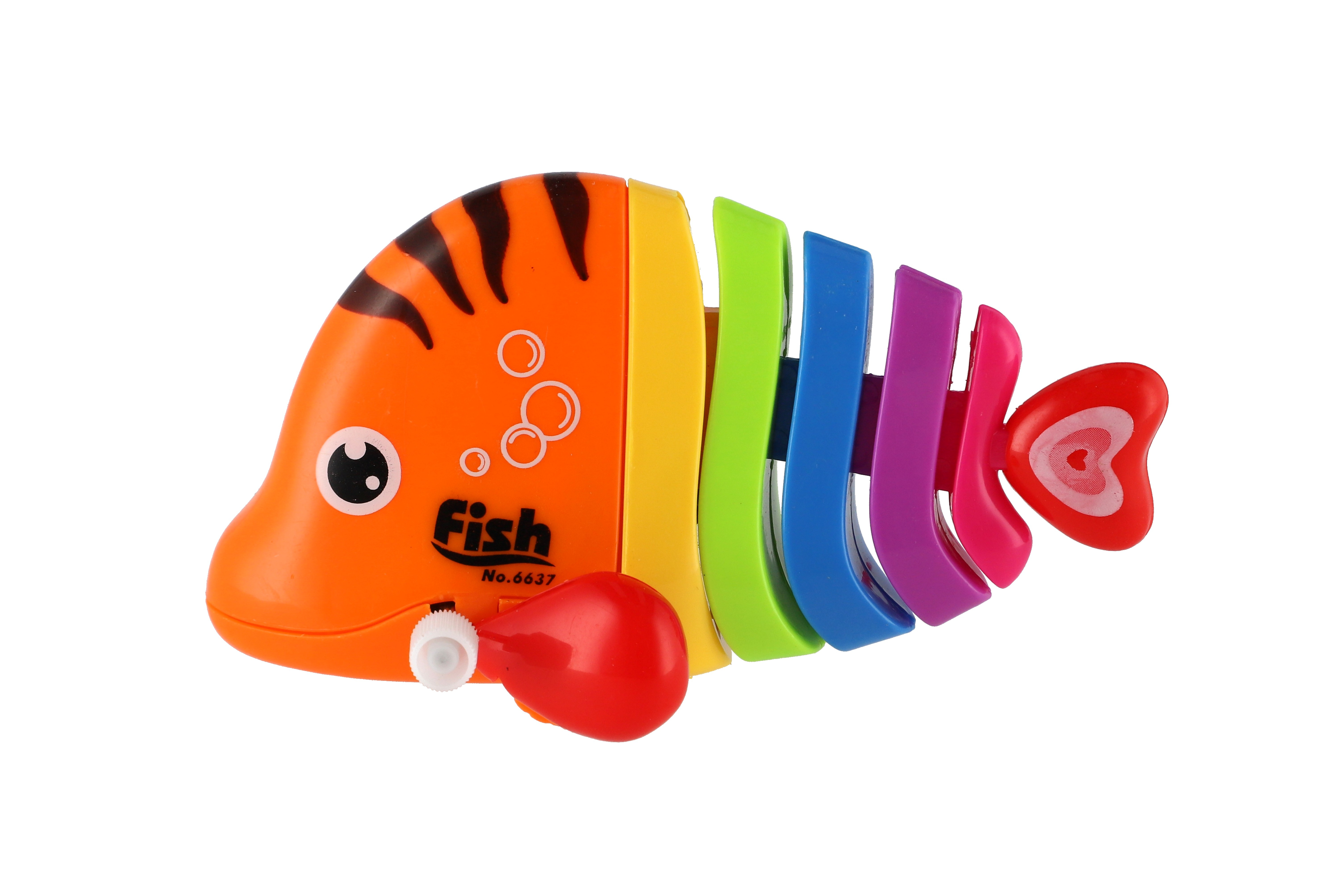 Pestrobarevná rybka na natažení vyrobená z plastu. Veliskot 11 cm. Vhodně pro děti od 3 let.