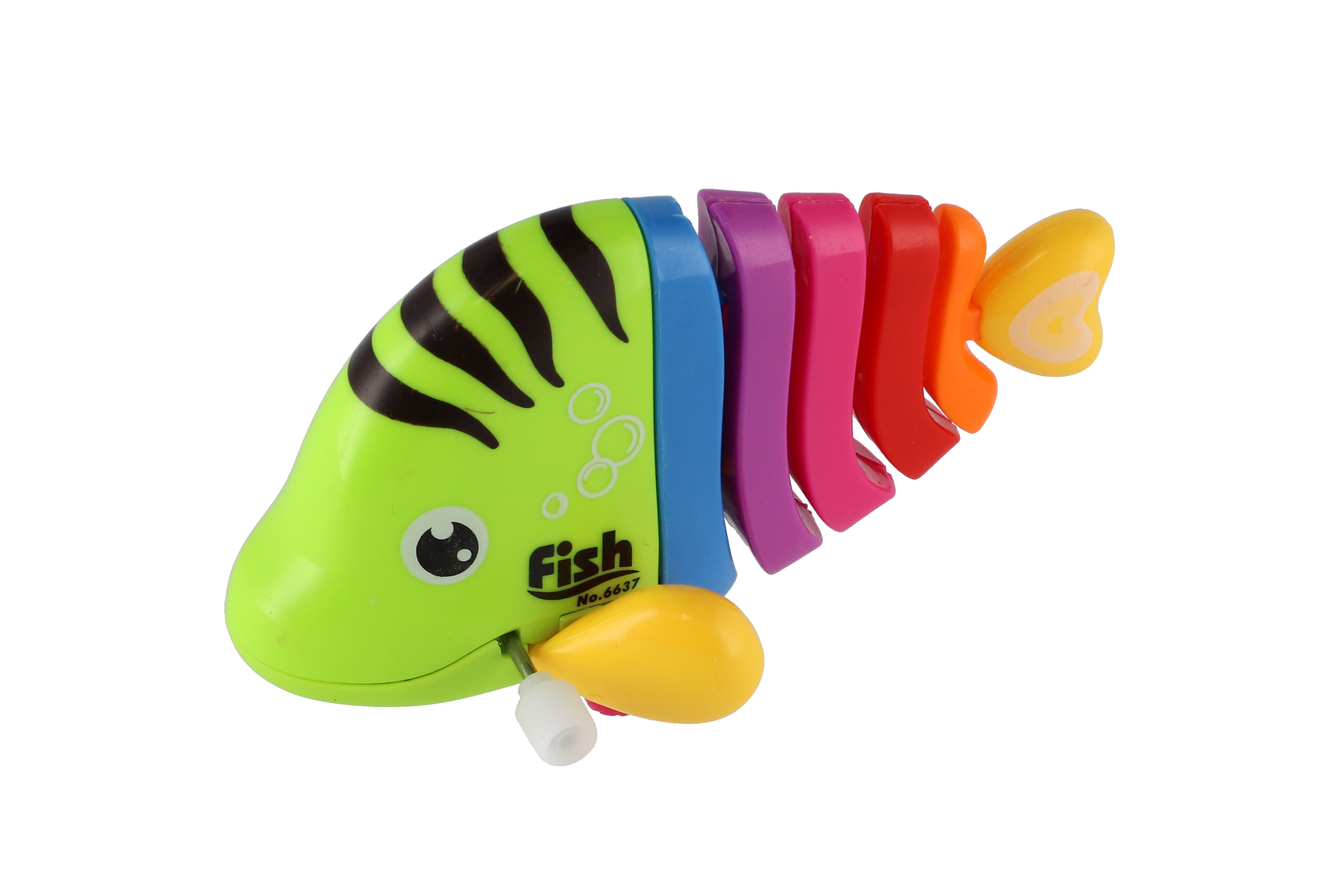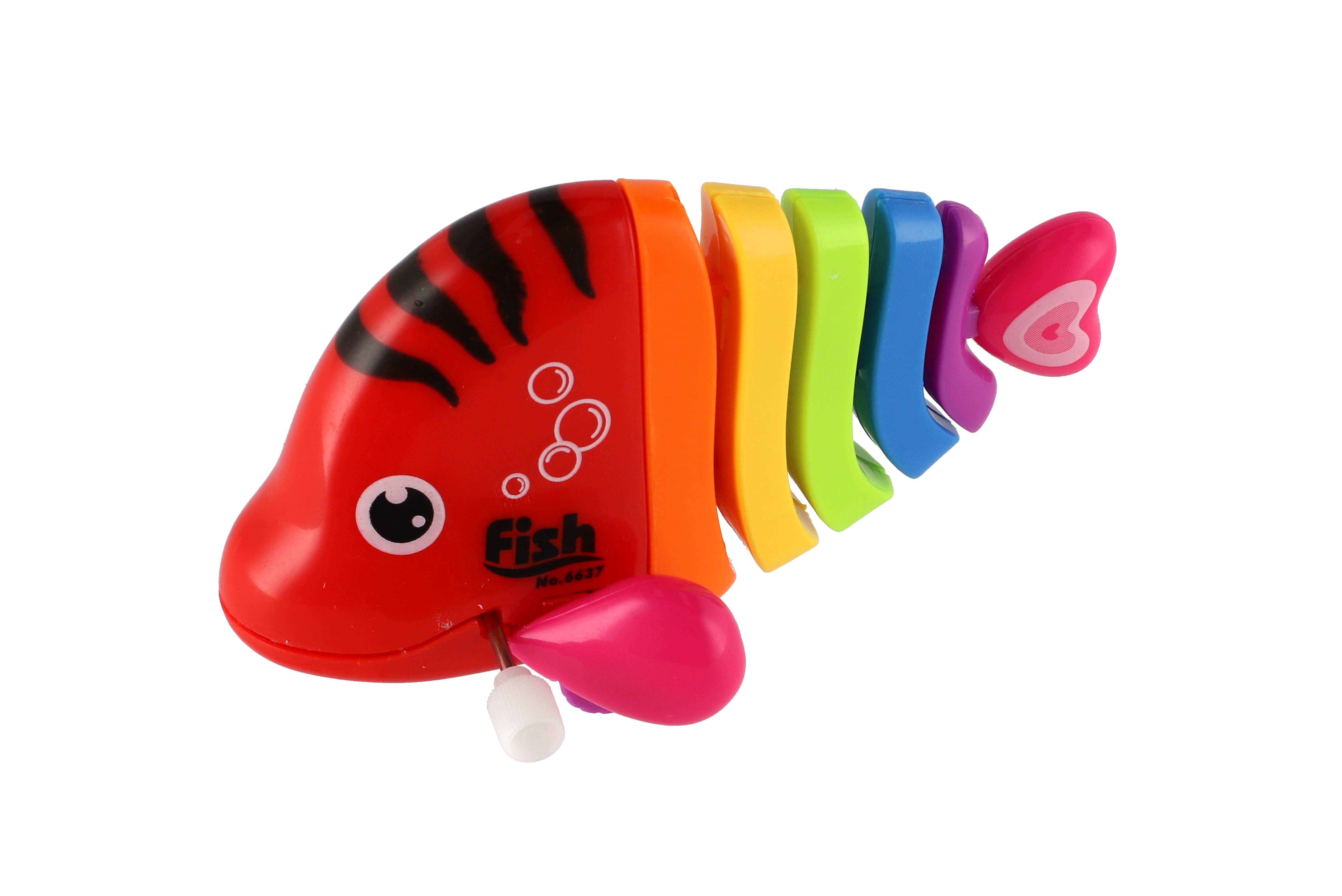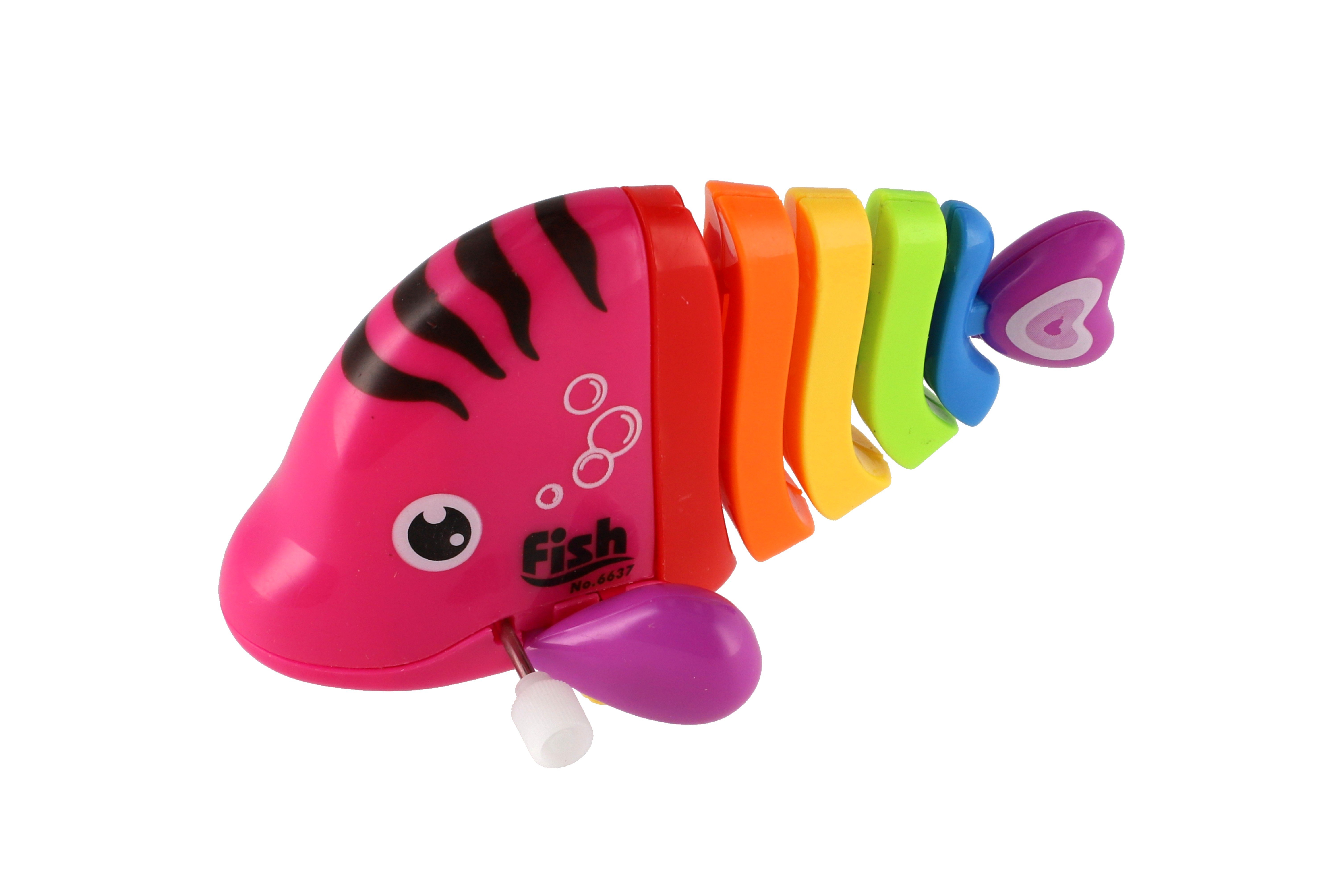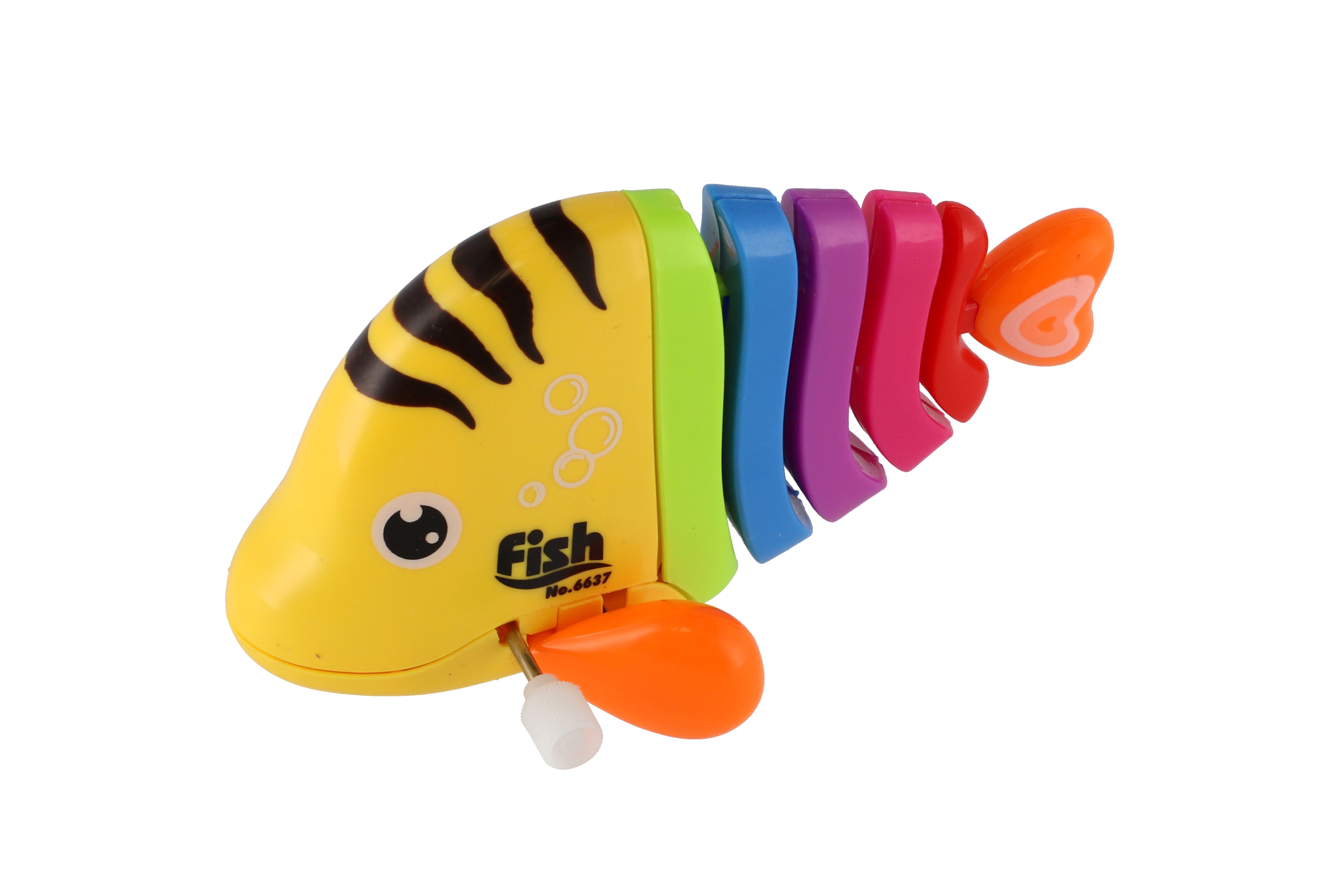 Pestrobarevná rybka na natažení vyrobená z plastu. Veliskot 11 cm. Vhodně pro děti od 3 let.