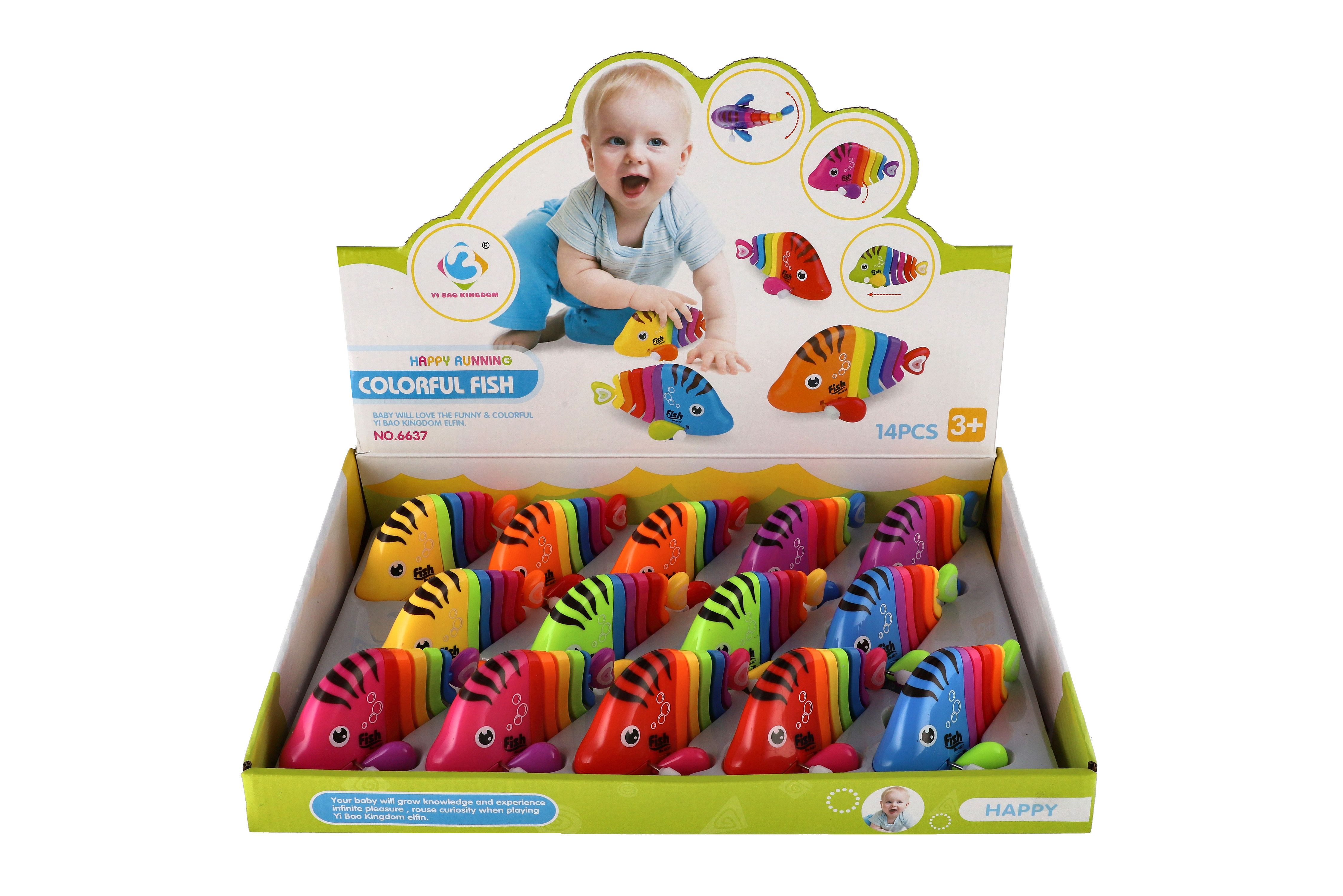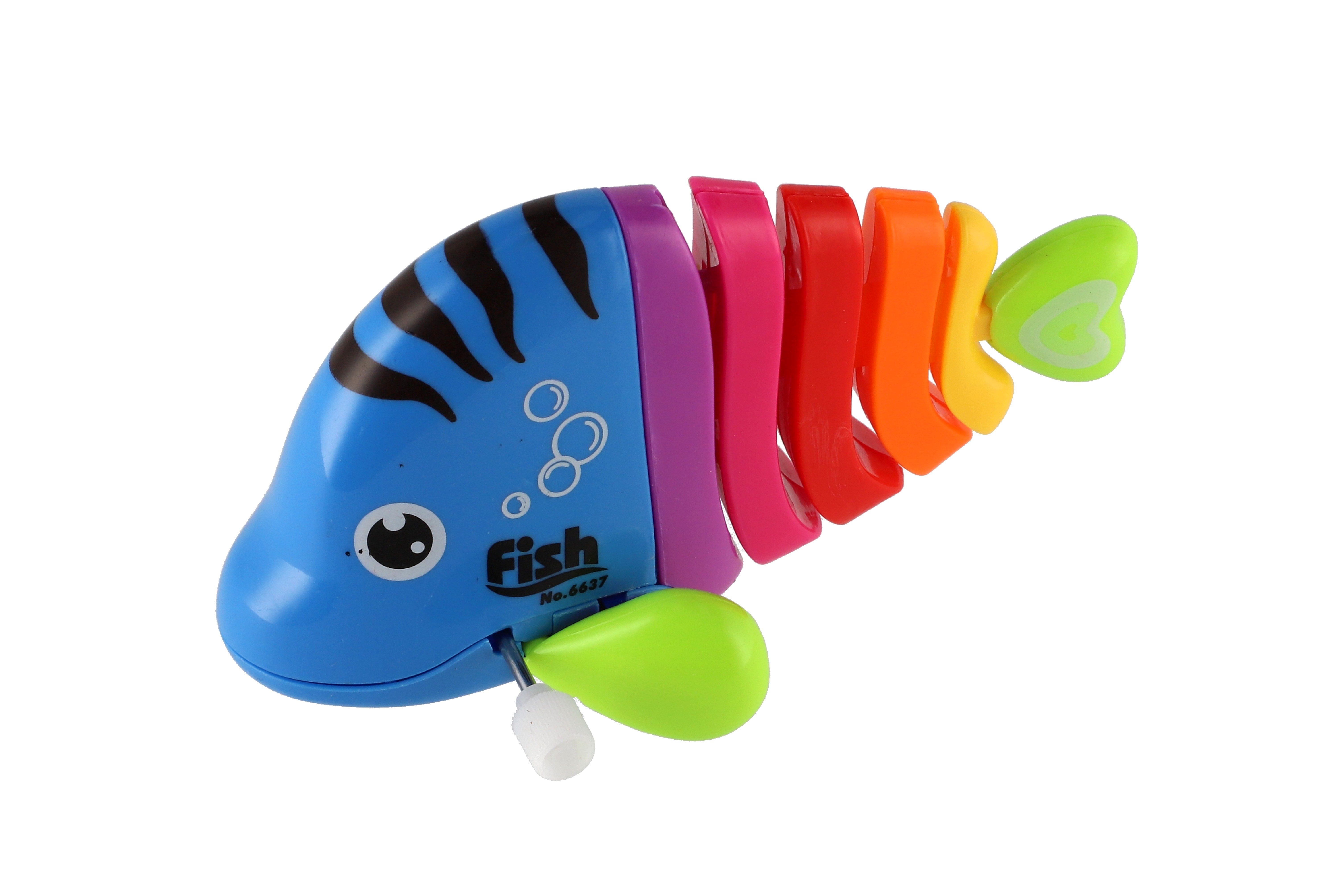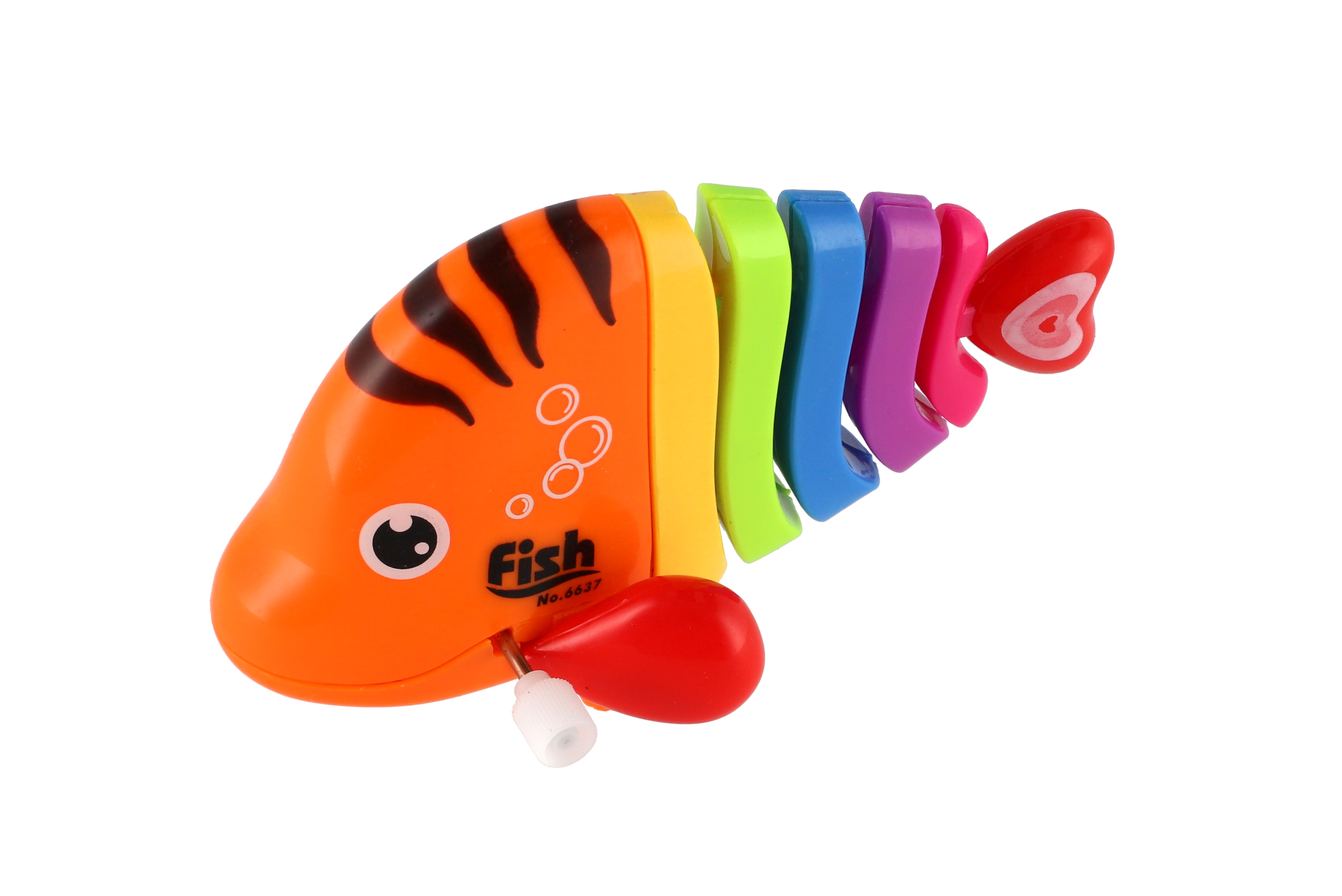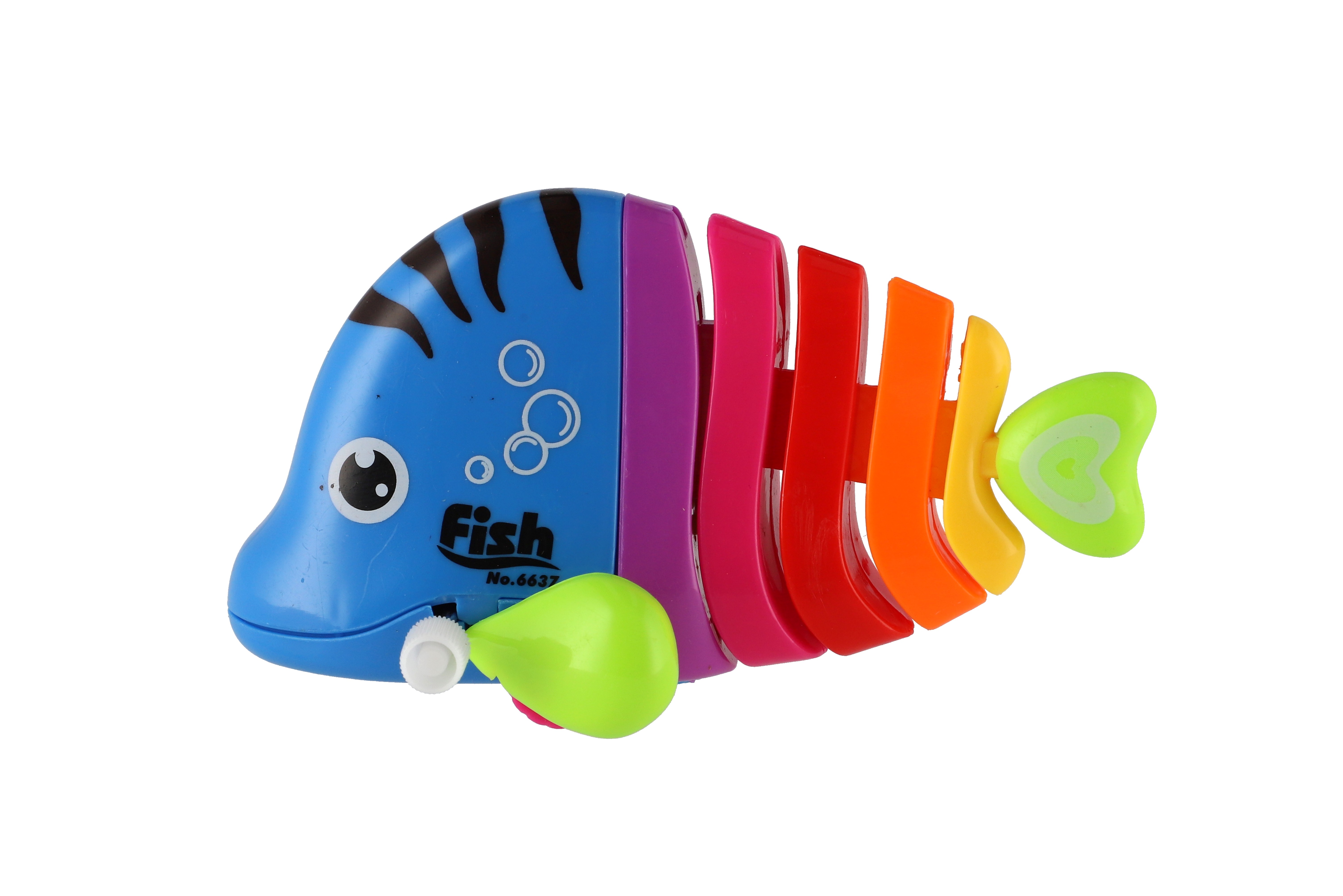 Pestrobarevná rybka na natažení vyrobená z plastu. Veliskot 11 cm. Vhodně pro děti od 3 let.
