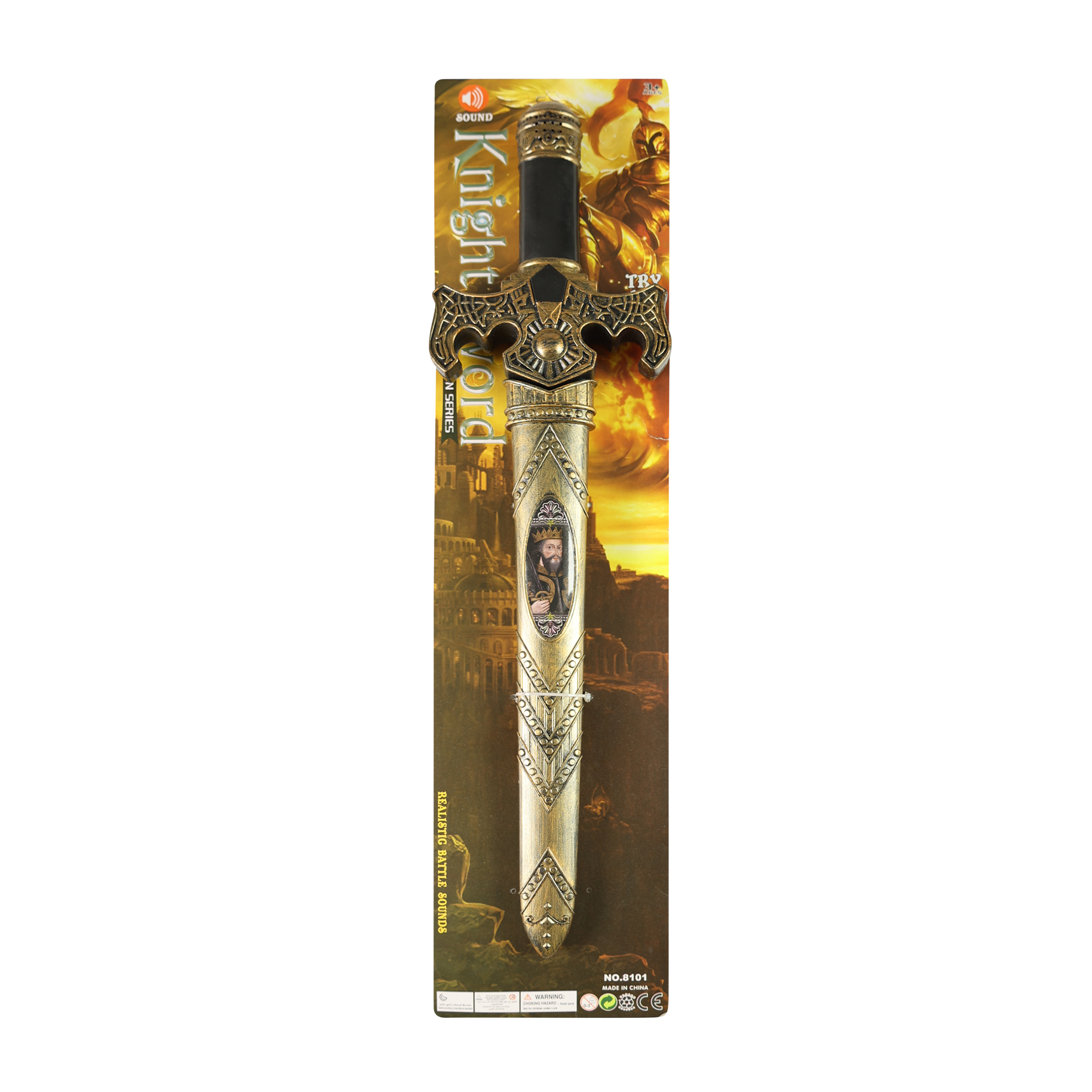 Rytířský meč s pouzdrem promění každé dítě v odvážného hrdinu! Malí rytíři mohou vyrazit do boje, chránit království a zažít spoustu dobrodružství na každém karnevalu či při domácí bitvě. Meč v délce 55 cm vydává zvuky. Pro zvuk je potřeba vložit do rukojeti 2 baterie typu AA, které nejsou součástí balení.