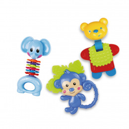 Rádi byste pořídili vašemu miminku hračku, kterou si zamiluje? Sada těchto veselých chrastítek je určena právě pro něj! Každé dítě má rádo pestré hračky, které vydávají zvuky a snadno se uchopí. S těmito roztomilými chrastítky zažije děťátko mnoho legrace a navíc si přitom rozvíjí motorické a zrakové schopnosti.