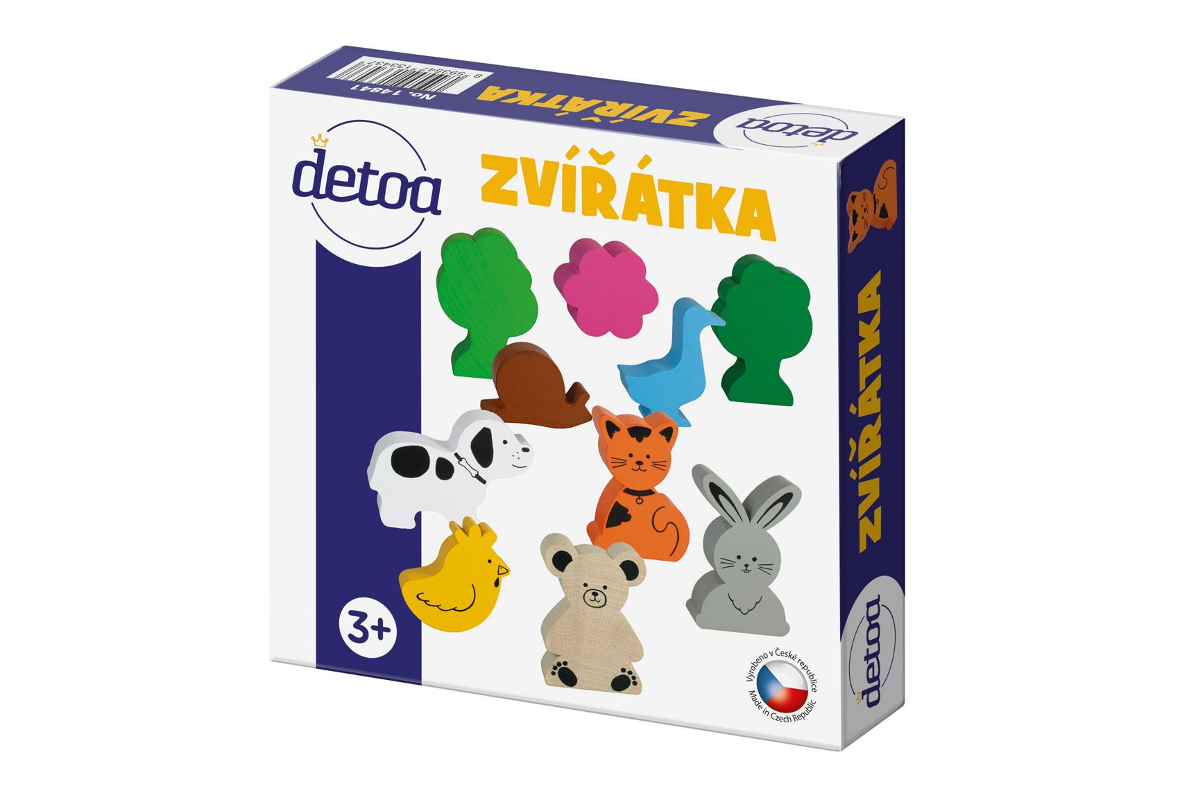 Sada obsbahuje 10ks dřevěných profilových tvarů zvířátek v různých velikostech. Některá jsou ponechána v přírodním vzhledu, jiná jsou obarvena a potištěna.. Figurky slouží ke hře, rovíjení představivosti, lze je kompbinovat s jinými výrobky zn. DETOA…Nevhodné pro děti do 3 let.