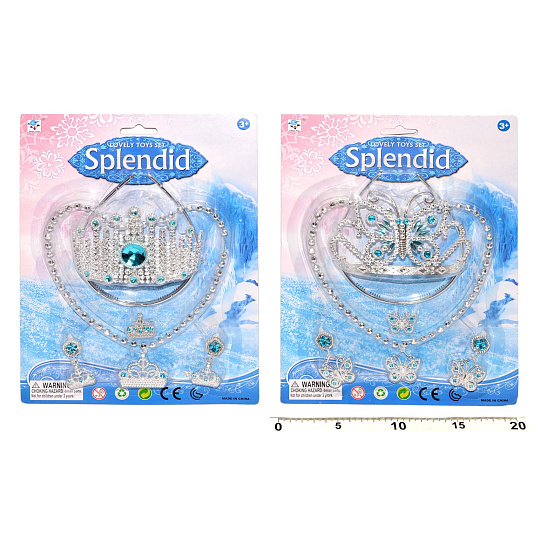 Sada krásy plast korunka, náhrdelník, naušnice, prsten 2 druhy na kartě 20x28cm