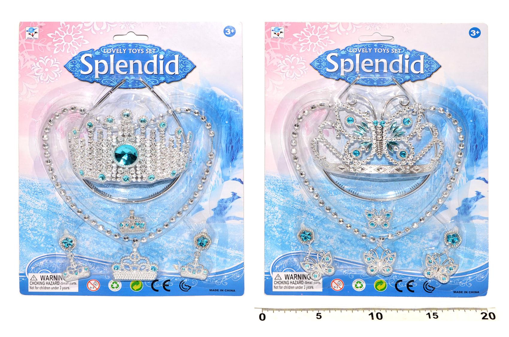 Princezna set. 2 varianty - korunky, motýli. Obsah balení - korunka, náhrdelník, prsten, 2x náušnice.