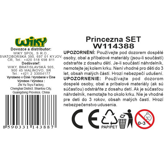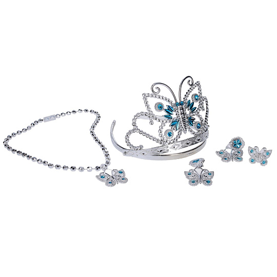Princezna set. 2 varianty - korunky, motýli. Obsah balení - korunka, náhrdelník, prsten, 2x náušnice.