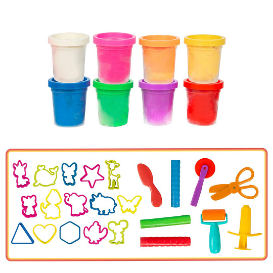Sada modelína/plastelína 8x57g s doplňky v krabici 21,5x31x6cm