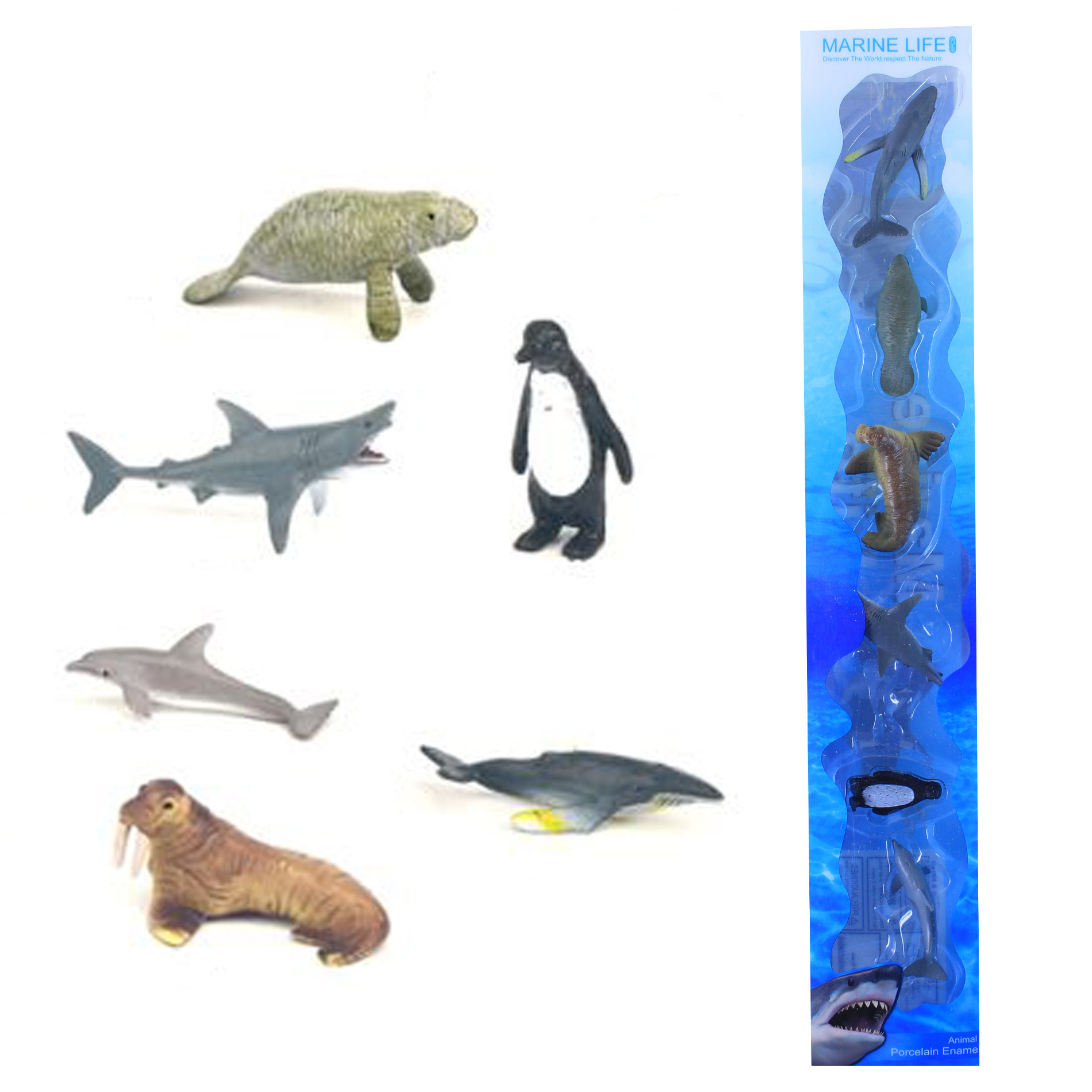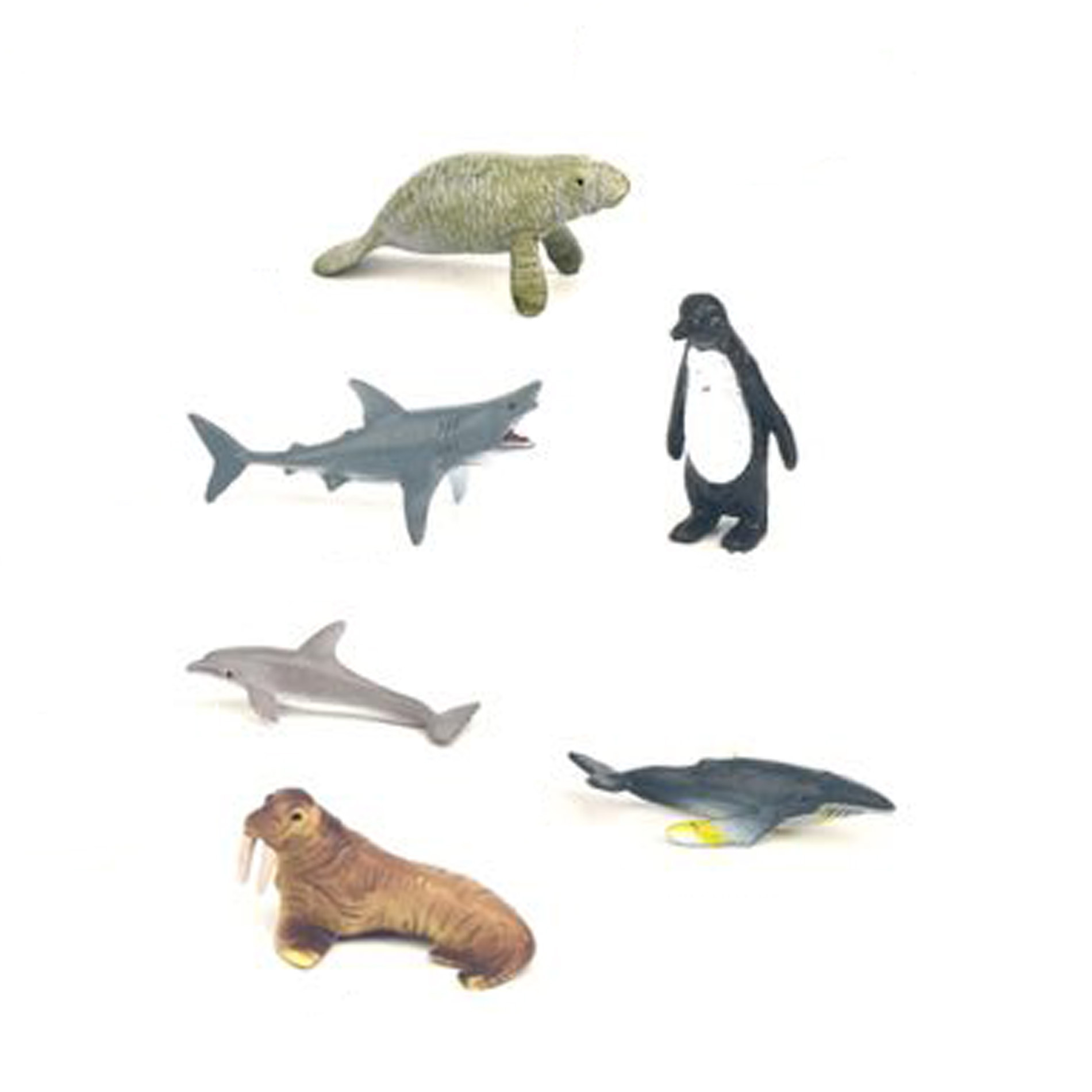 Mořská zvířata v sadě po 6 ks. Jsou vyrobena z kvalitní, tvrdé gumy. Velikost zvířátka cca 4-9 cm.