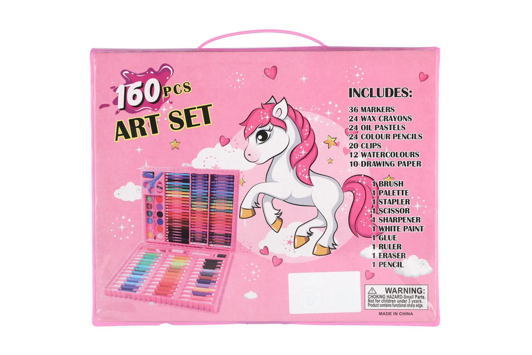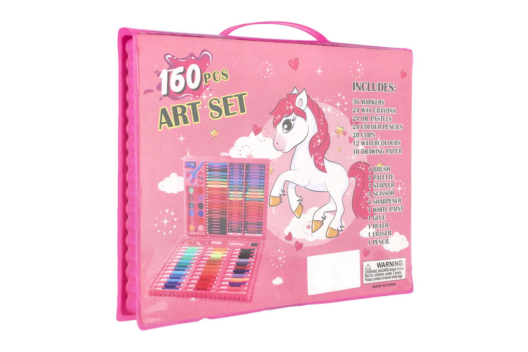 Vstupte do světa barev a fantazie! Tato kreativní sada s motivem jednorožce je splněným snem každého malého umělce. V praktickém plastovém kufříku najdete 160 výtvarných pomůcek – pastelky, fixy, voskovky, vodovky a další potřeby, které rozzáří každý obrázek. Rozměr kufříku: 34 × 27 × 3,5 cm Vhodné pro děti od 14 let