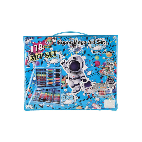 Připravte se na kreativní cestu do vesmíru! Tato kreativní sada s vesmírným motivem nadchne všechny malé výtvarníky. Obsahuje 178 výtvarných potřeb přehledně uspořádaných v lehkém plastovém kufříku, který je ideální na doma, do školy i na cesty. Díky bohatému obsahu mohou děti kreslit, malovat a tvořit bez omezení. Rozměr kufříku: 34 × 27 × 3,5 cm Vhodné pro děti od 14 let