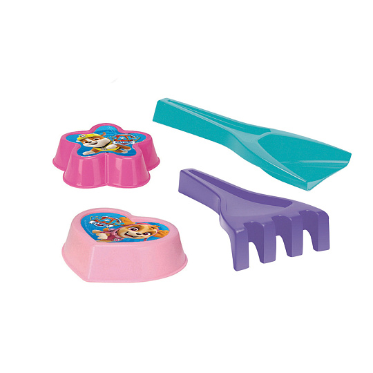 WADER Sada na písek 4ks plast lopatka,hrabičky,2ks formiček Tlapková patrola/Paw Patrola 4 barvy v síťce