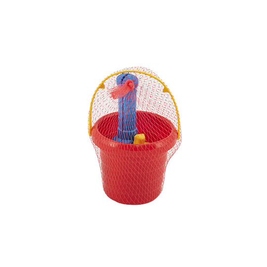 Sada na písek 5ks plast kbelík, lopatka, hrabičky, bábovka 2ks 3 barvy v síťce11x18x11cm 12m+