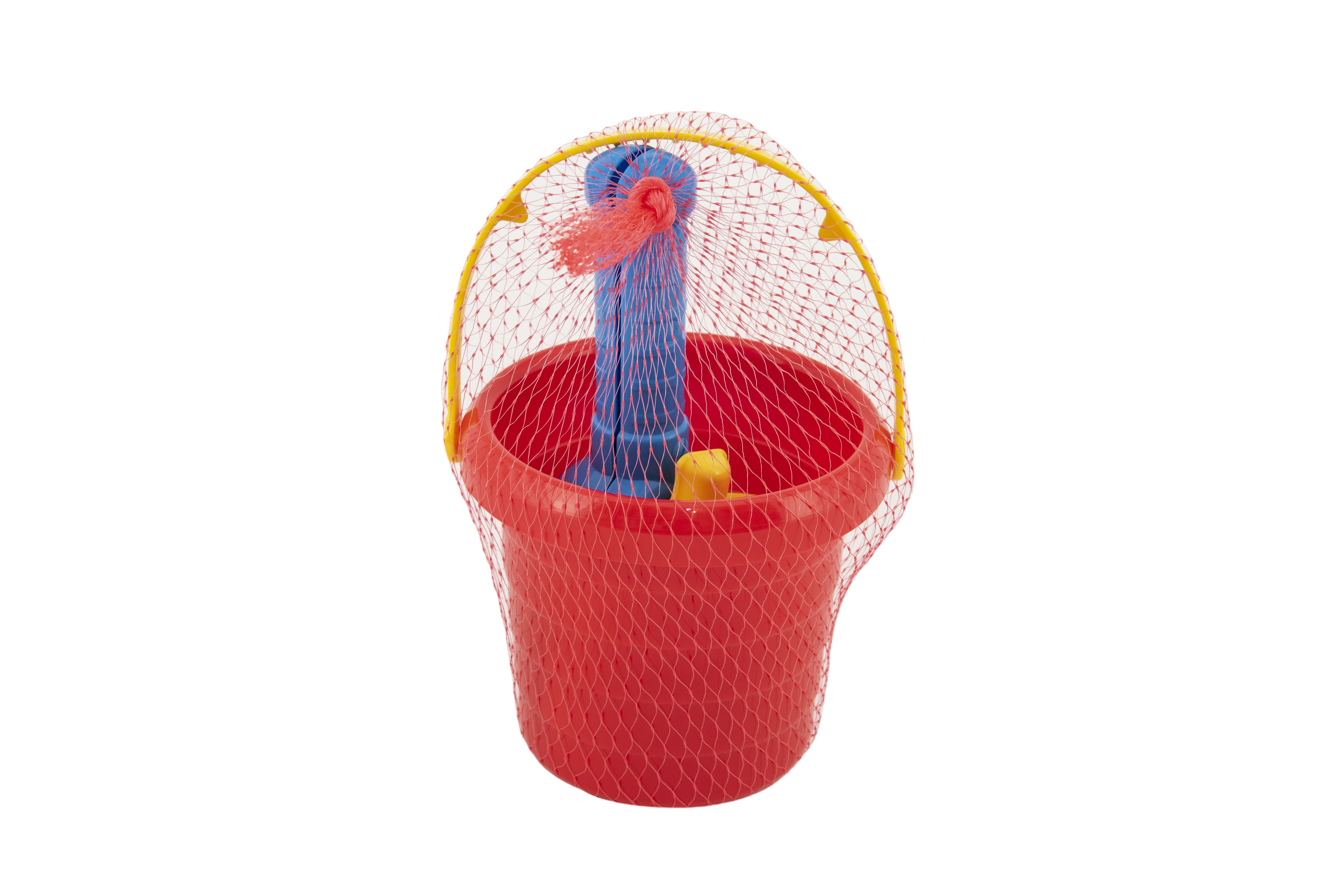 Sada na písek 5ks plast kbelík, lopatka, hrabičky, bábovka 2ks 3 barvy v síťce11x18x11cm 12m+