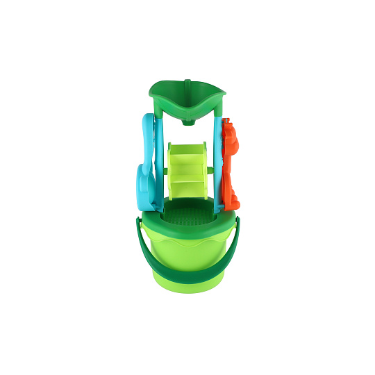 Teddies Sada na písek plast kbelík se sítkem 13x10cm, lopatka, hrabičky, mlýnek v síťce