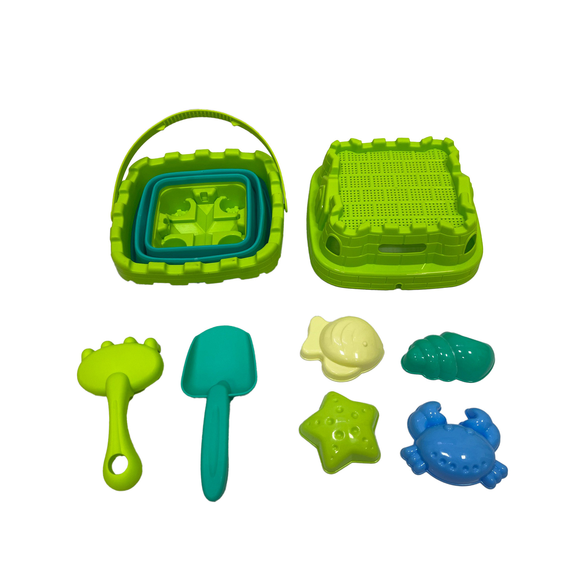 Veselé tvoření na pískovišti i na pláži může začít! S touto sadou mohou děti stavět hrady, tvořit bábovky i objevovat svět písku hravou formou. Sada obsahuje skládací kyblík se sítkem, lopatku, hrábě a 4 formičky. Perfektní dárek pro letní radovánky! Velikost kyblíku je cca 12 cm.
