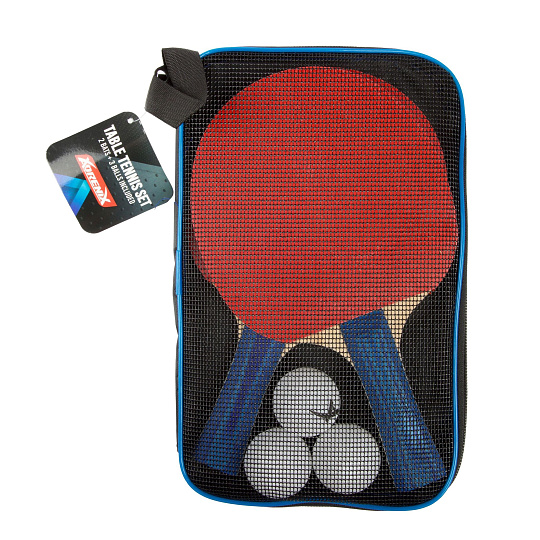 Stolní tenis je oblíbenou zábavou a to nejen na doma, ale také na dovolenou. Pálky a míček si můžete kamkoliv s sebou díky praktické taštičce na zip. Sada obsahuje 2 pálky, 3 míčky. Rozměr pálky: 26 cm Rozměr pouzdra: 17 x 27 cm