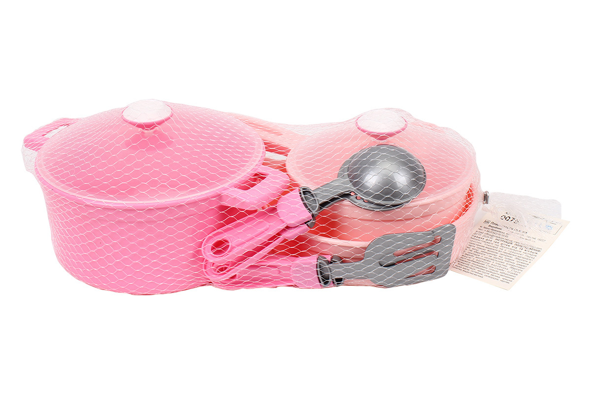 Sada nádobí s doplňky plast růžová v síťce 20x30x10cm 18m+