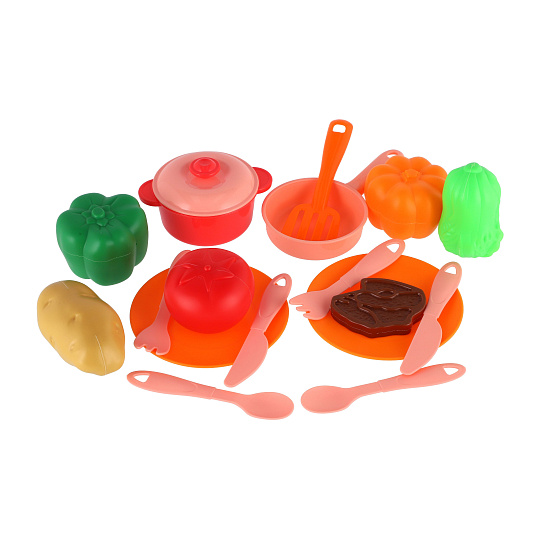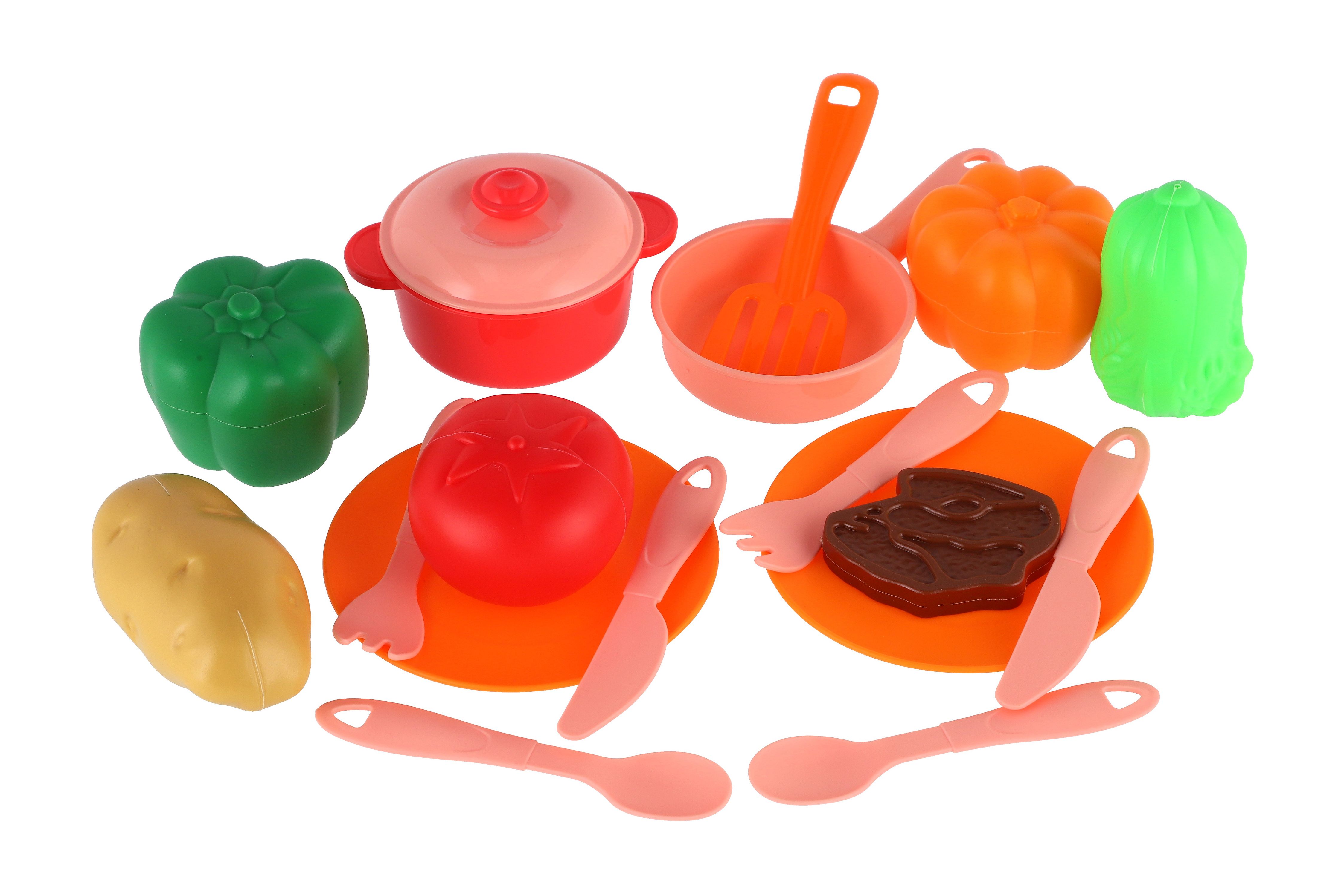 Barevná sada nádobí pro malé kuchaře! Obsahuje vše potřebné k servírování a hraní na vaření. Uloženo v praktické ošatce pro snadné přenášení a úklid. Perfektní pro dětskou kuchyňku. Rozměr balení: 20 x 20 x 7 cm Vhodné pto děti od 3 let