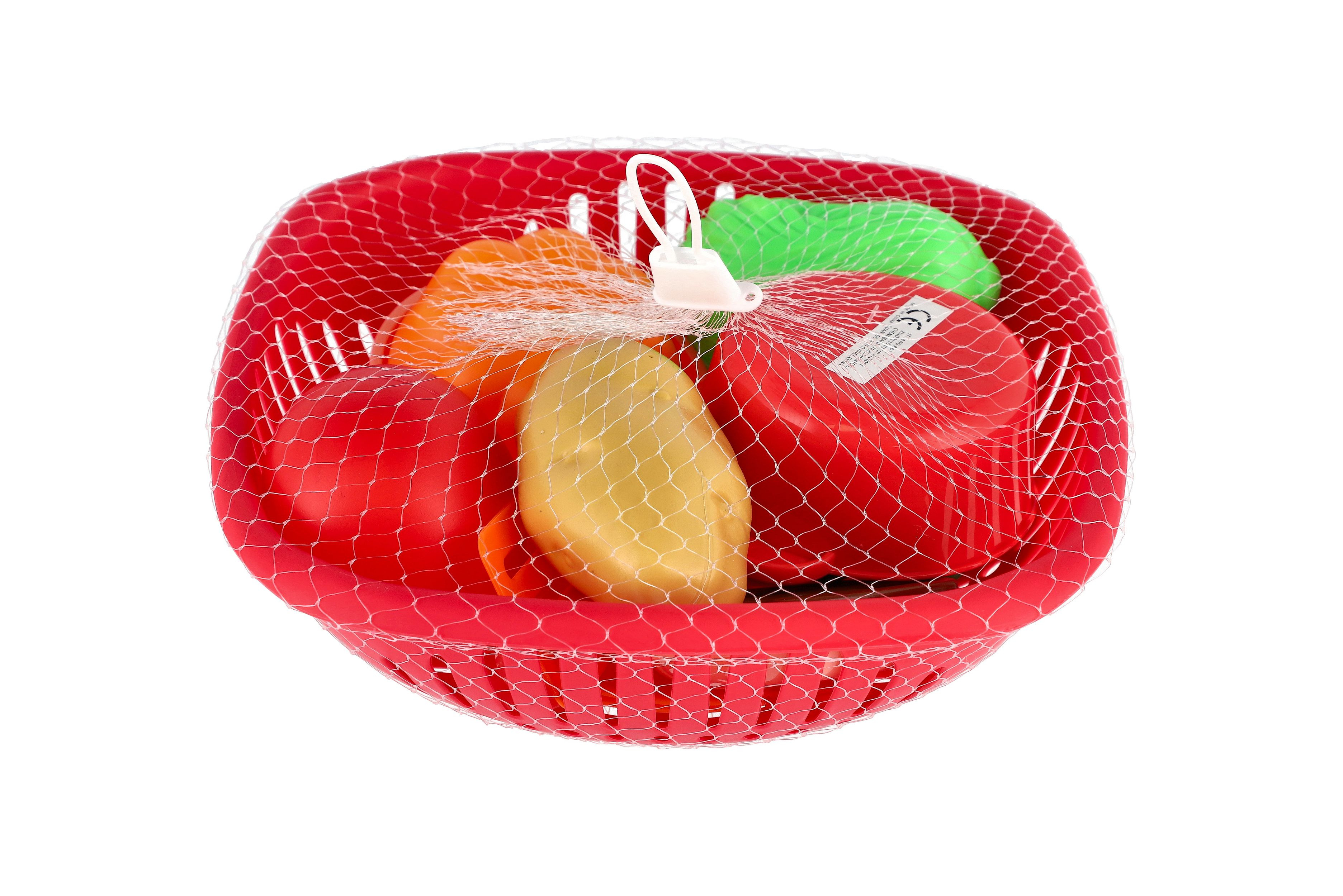 Sada nádobí v ošatce plast s doplňky v síťce 20x20x7cm