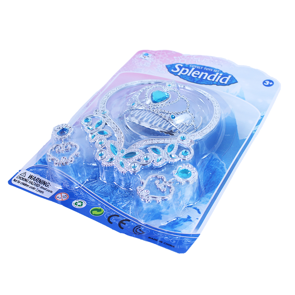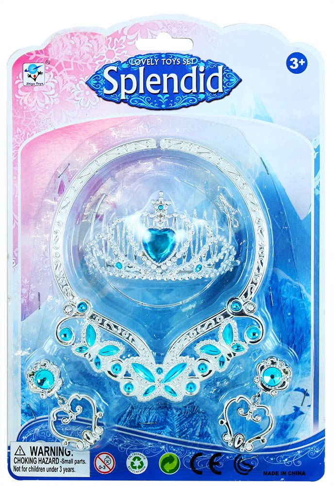 Krásná korunka s náušnicemi a náhrdelníkem pro všechny sněhové princezny. Doplňky jsou zdobeny modrými prvky a korunka navíc nepřehlédnutelným ozdobným kamínkem. Perfektní sada ke kostýmu! Doporučeno pro děvčata od 3 let.