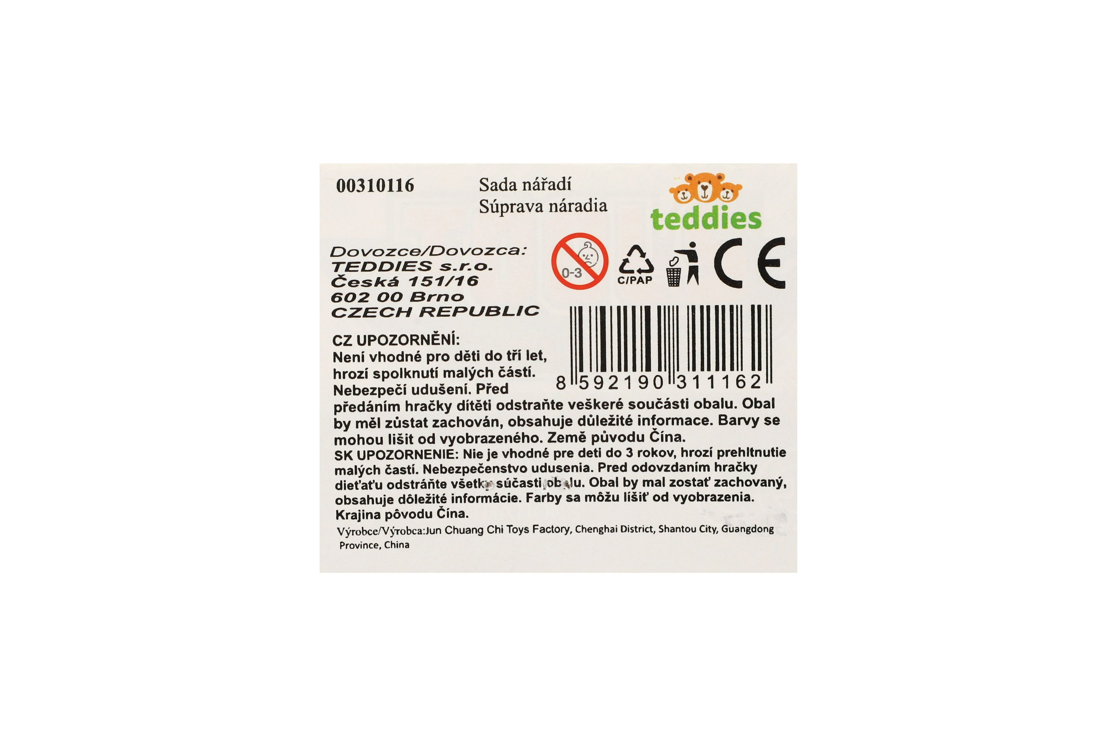 Nedílnou součástí výbavy každého malého kutila je pořádná sada nářadí. Tato sada plastového nářadí se dodává v sáčku a nářadí vypadá jako opravdové. Rozměry balení 21 x 24 x 5 cm. Vhodné pro děti od 3 let.