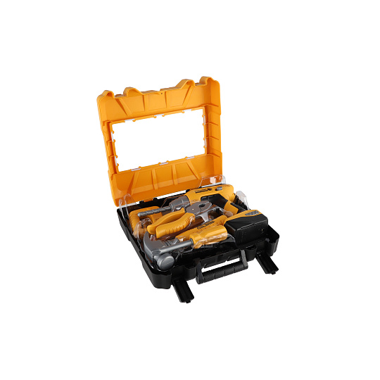 Tato dětská sada nářadí s vrtačkou je ideálním dárkem pro malé kutily, kteří rádi napodobují práci dospělých. Sada obsahuje vše potřebné pro malé opraváře v praktickém plastovém kufříku. Hračka je vybavena zvukovými efekty a napájena packem na baterie (3xAAA, nejsou součástí balení), kompatibilní s dalšími nástroji stejné značky. Velikost vrtačky: 16 x 17 cm Rozměr balení: 26 x 25 x 9 cm Vhodné pro děti od 3 let